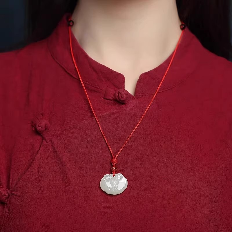 保真天然和田玉十二生肖吊坠儿童宝宝本命年如意平安锁玉石玉坠女