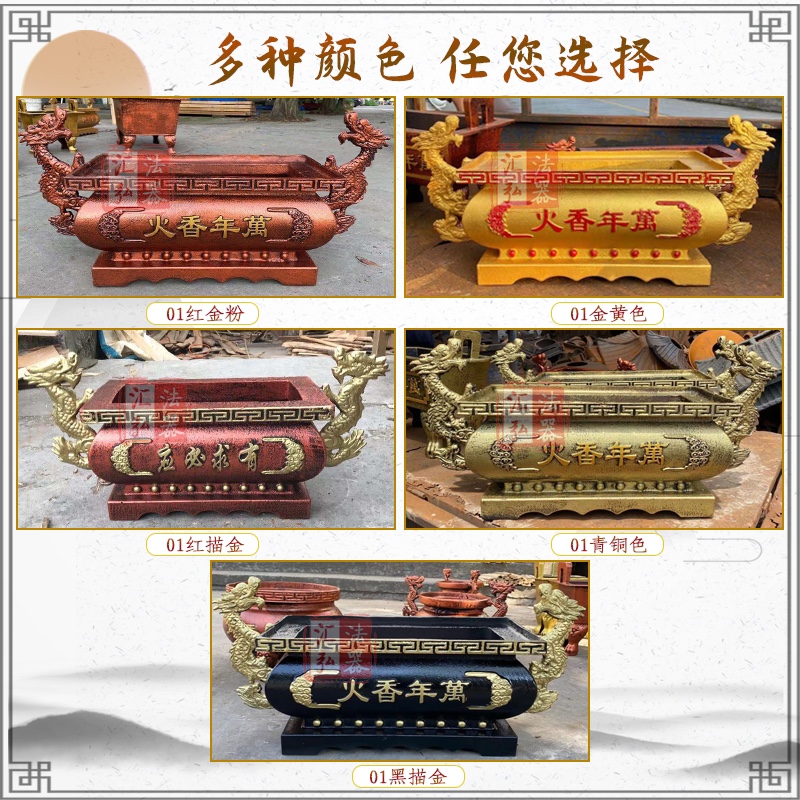 大型香炉寺庙铸铁双龙长方形家用祠堂室内案桌户外插香供奉供佛鼎