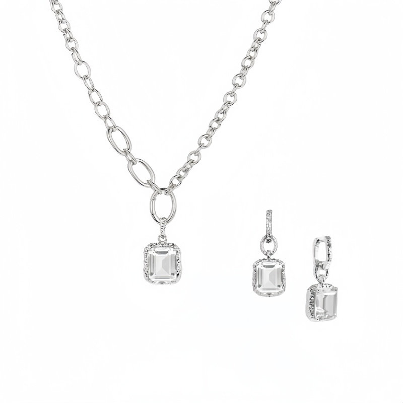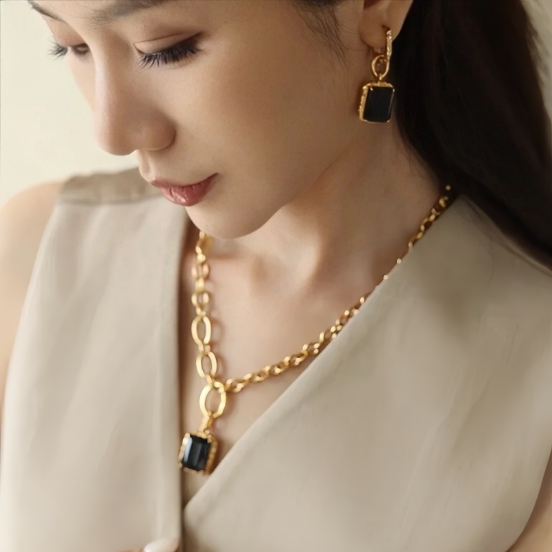 小众复古时尚 黑色方块熔岩锆石锁骨链高级感耳环女