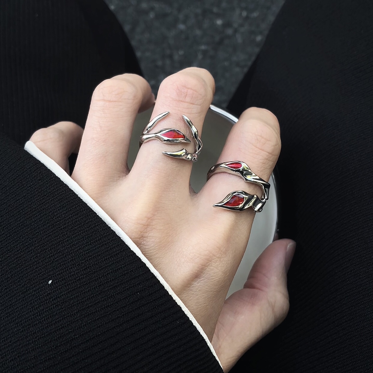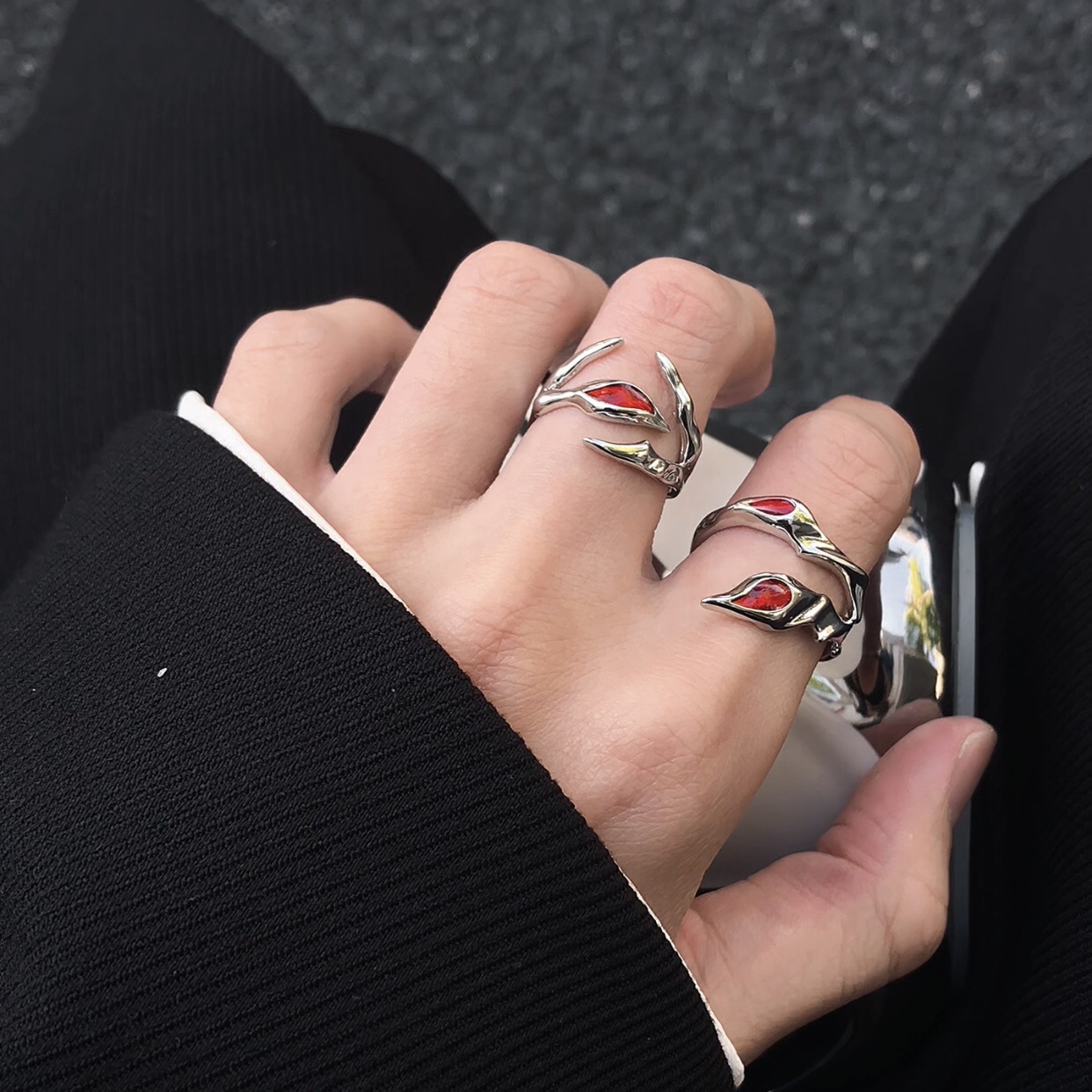 不规则红月光戒指男女小众设计轻奢指环百搭开口可调节配饰