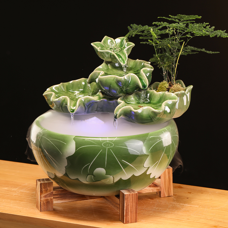 招财流水陶瓷鱼缸家用流水喷泉小金鱼缸大号养鱼摆件客厅加湿造景