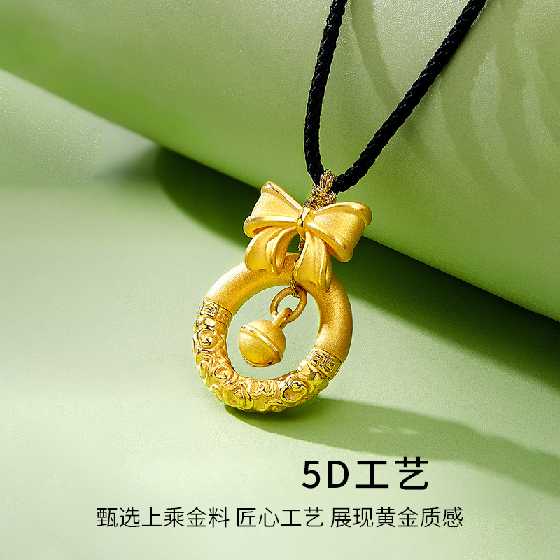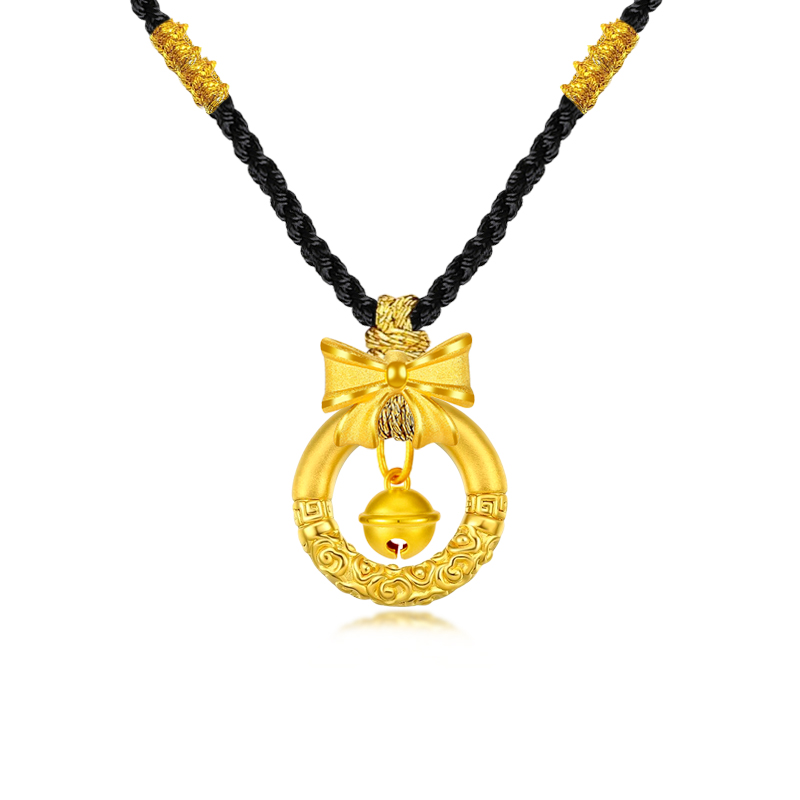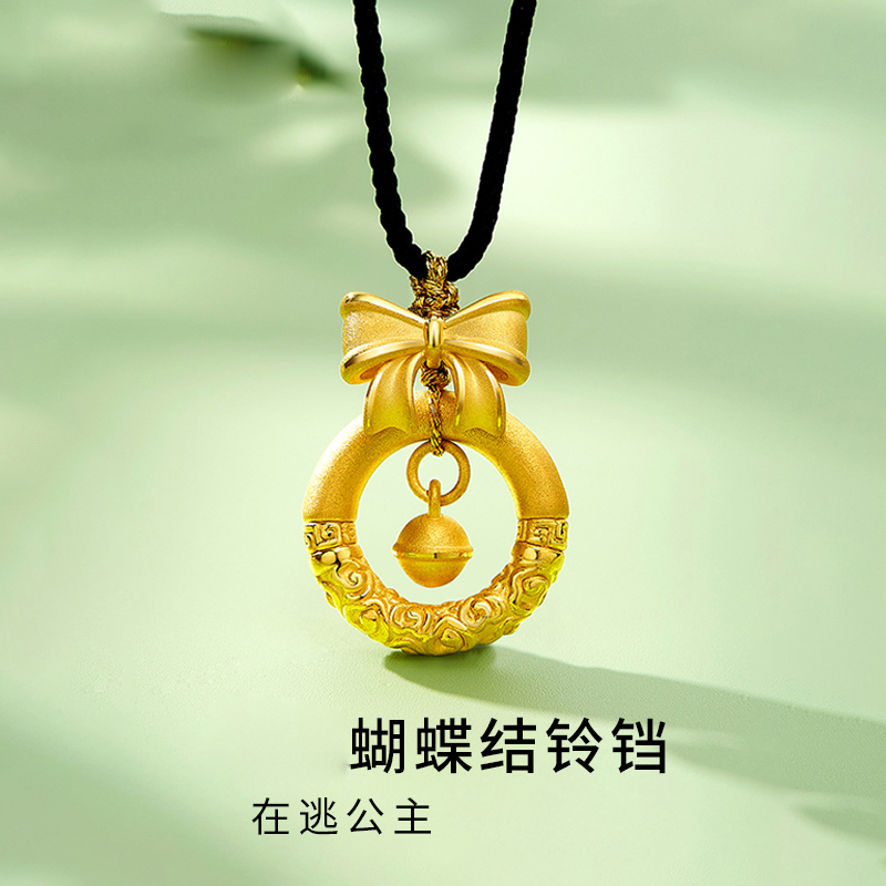 黄金平安扣吊坠金箍圈蝴蝶结在逃公主铃铛编绳项链生日礼物送女友
