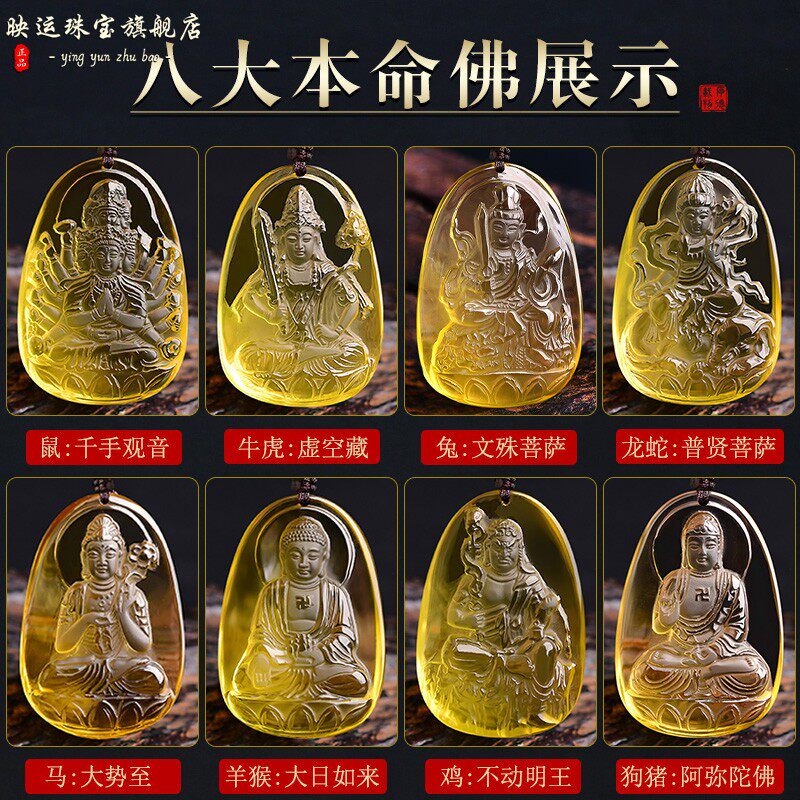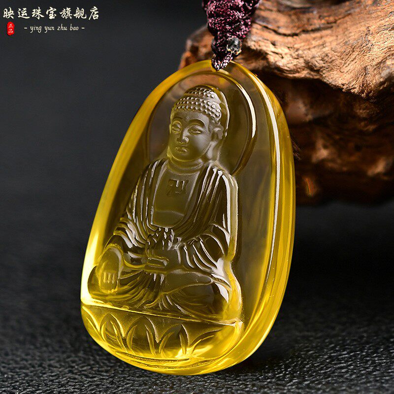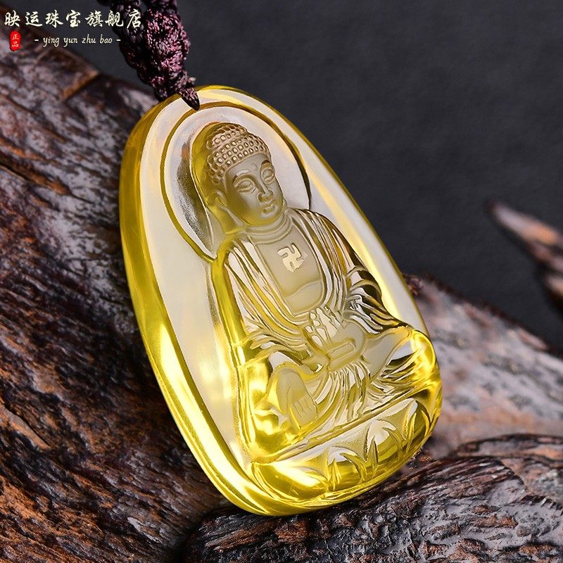 天然黄水晶大日如来菩萨吊坠属羊属猴生肖吉祥物本命男女挂件项链