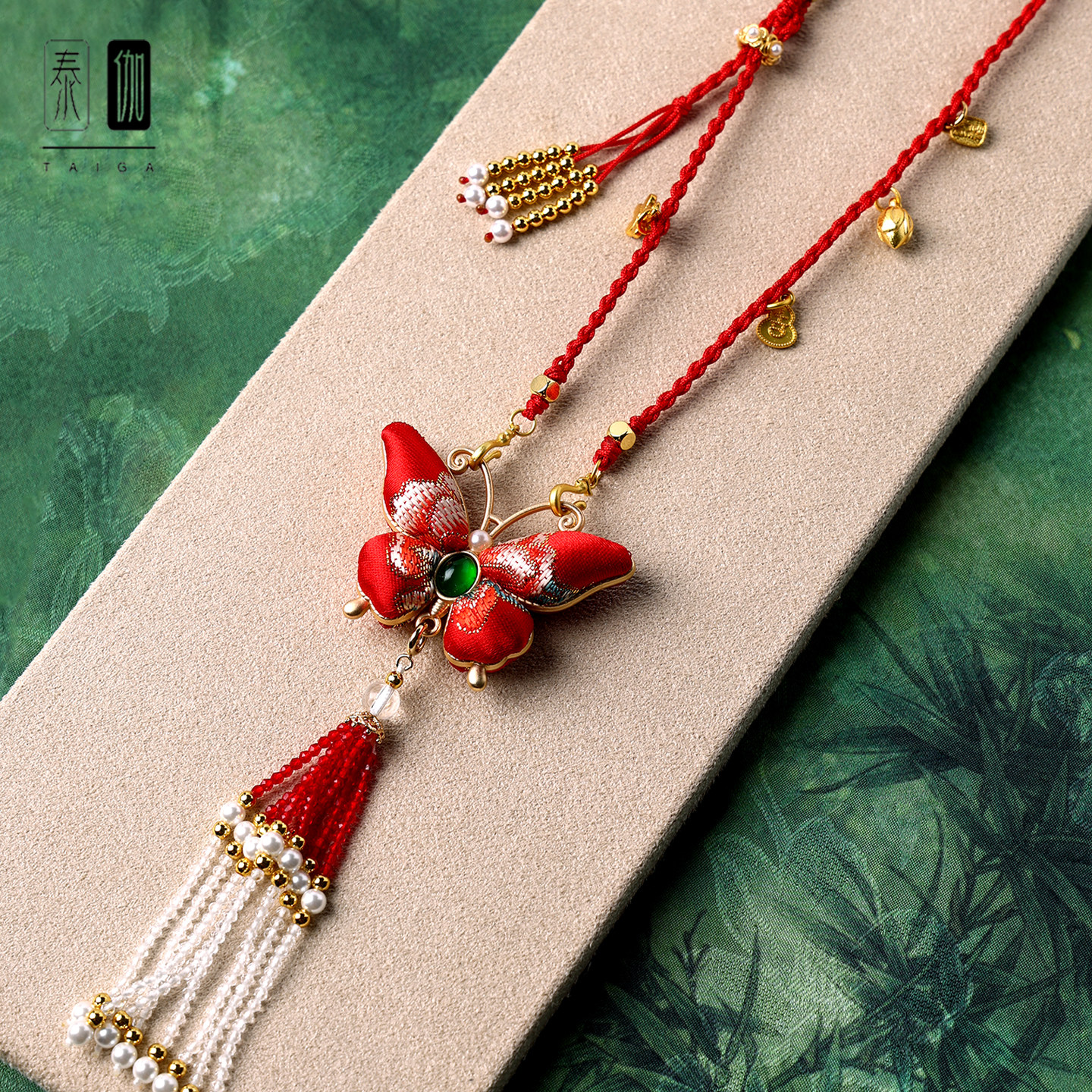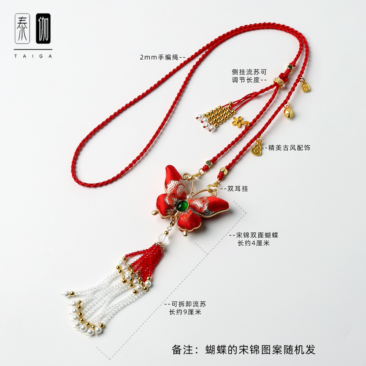 双面红袍宋锦蝴蝶水晶流苏吊坠手编挂绳侧边可调节国风汉服配饰