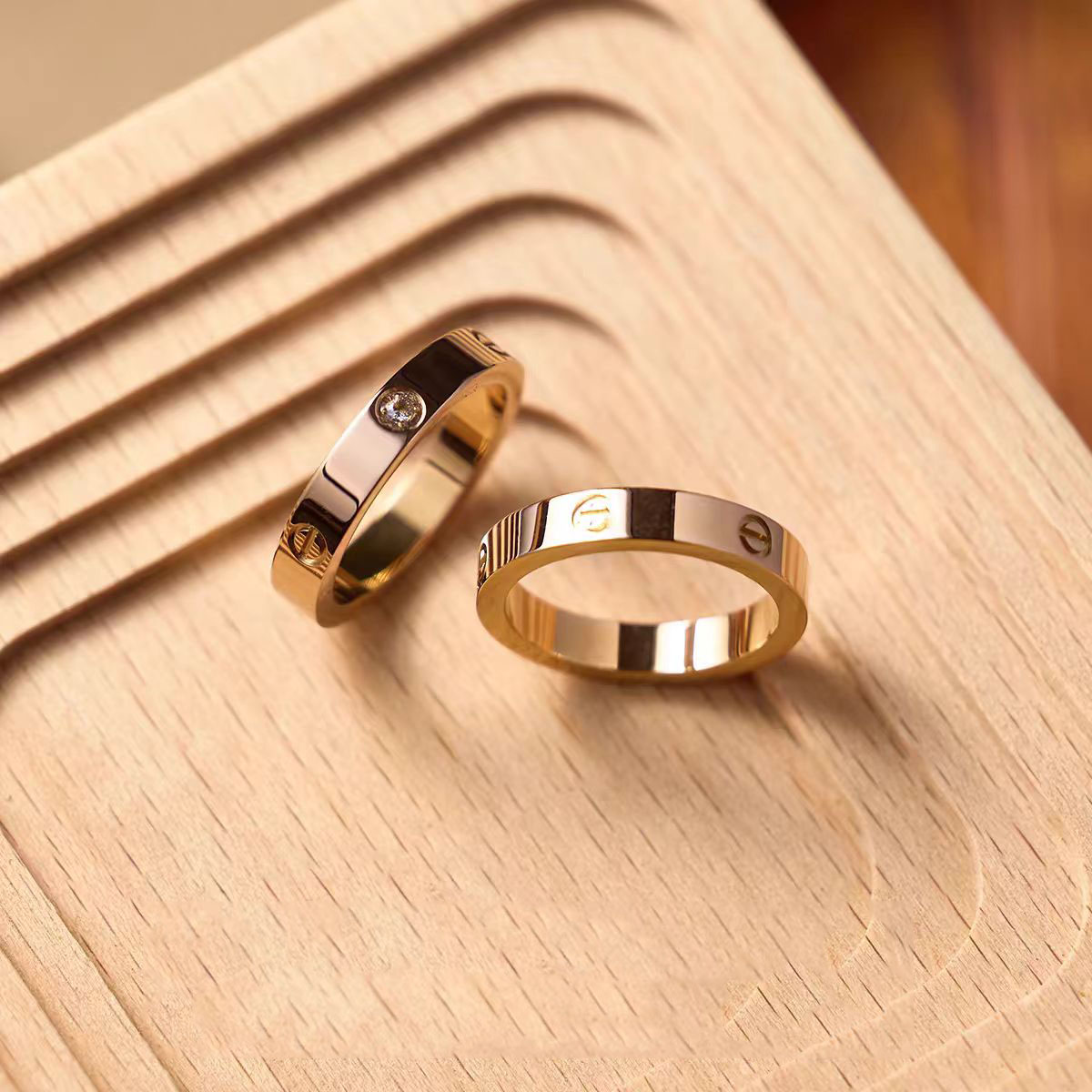 溪御钛钢素圈宽版新款时尚男女装饰戒指女轻奢高级感玫瑰金钻石