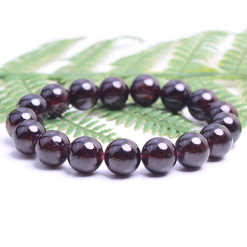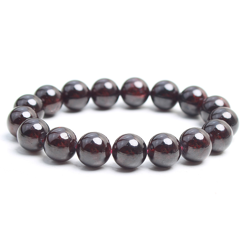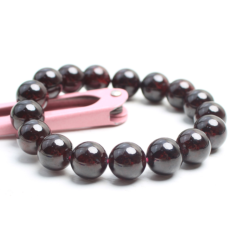 如鸿天然水晶手链女士手串大号酒红色石榴石单圈饰品礼物