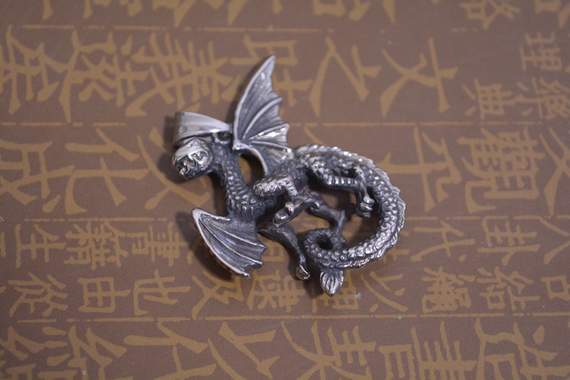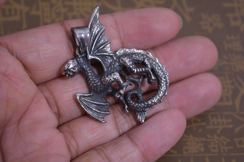 钛钢饰品科幻题材翼龙项坠科幻爱好者挂件人工做旧打磨不锈钢吊坠