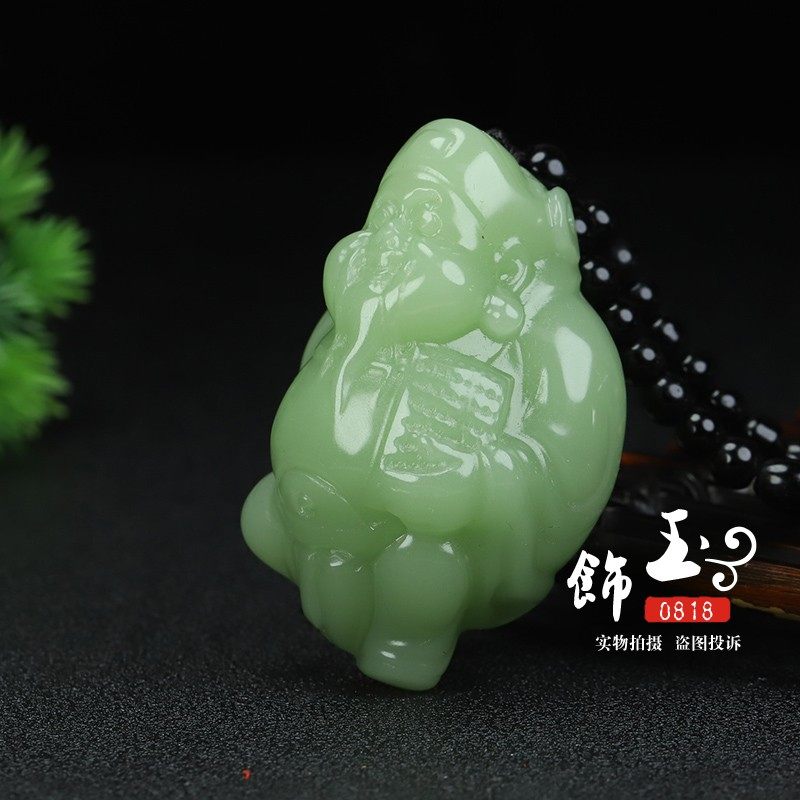 新疆和田玉算盘财神手把件青白玉招财进宝财神爷把玩件原石手抓件
