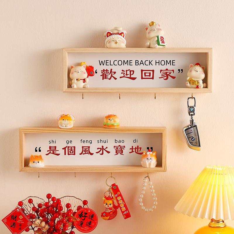 简约木质相框乔迁之喜钥匙玄关挂件框挂墙照片墙卡通相框桌面摆件