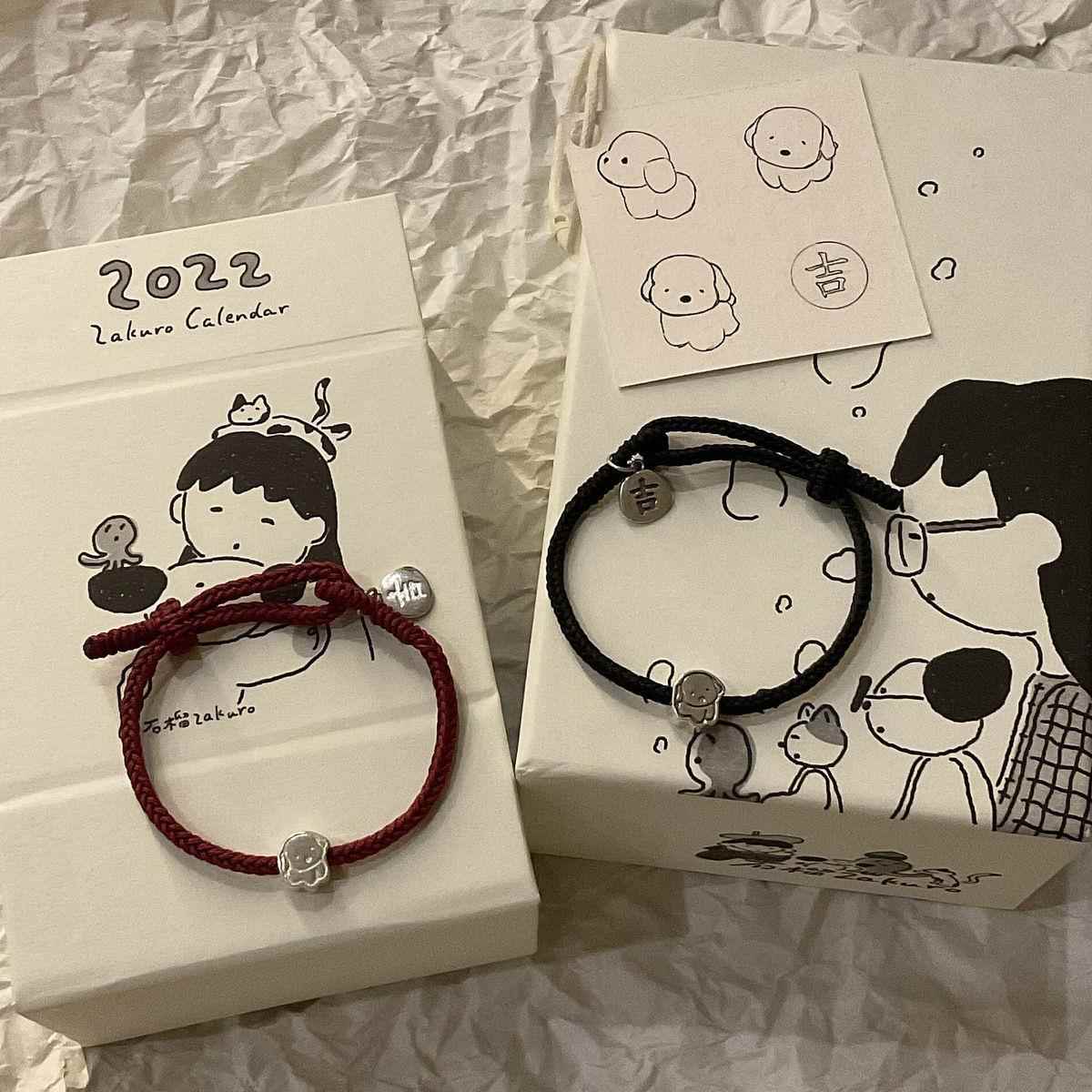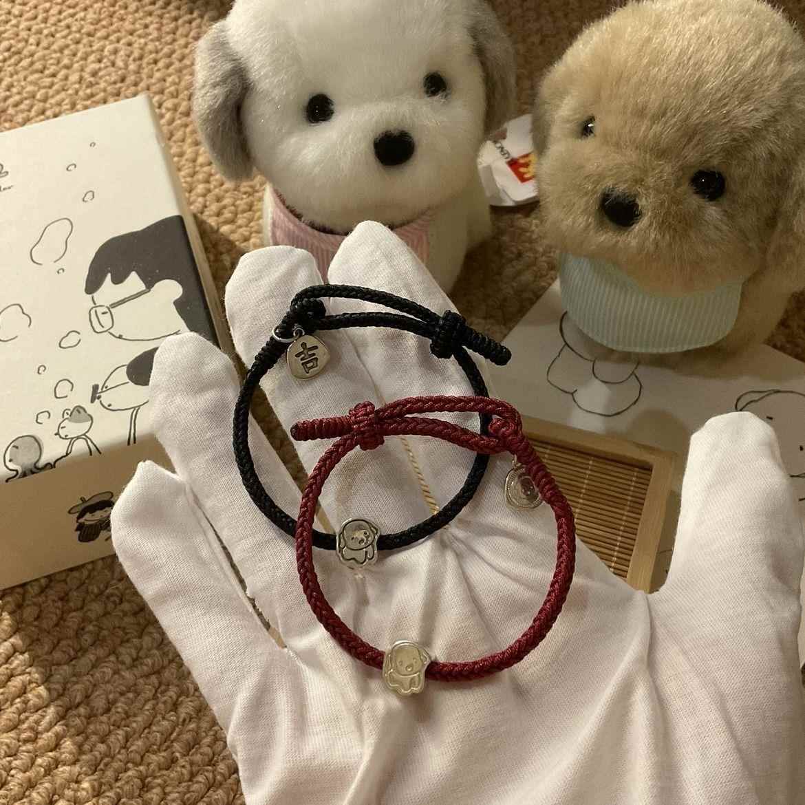 睡得醒才怪/吉祥小狗牌手绳成品风小皮筋可调节大小可爱情侣手链