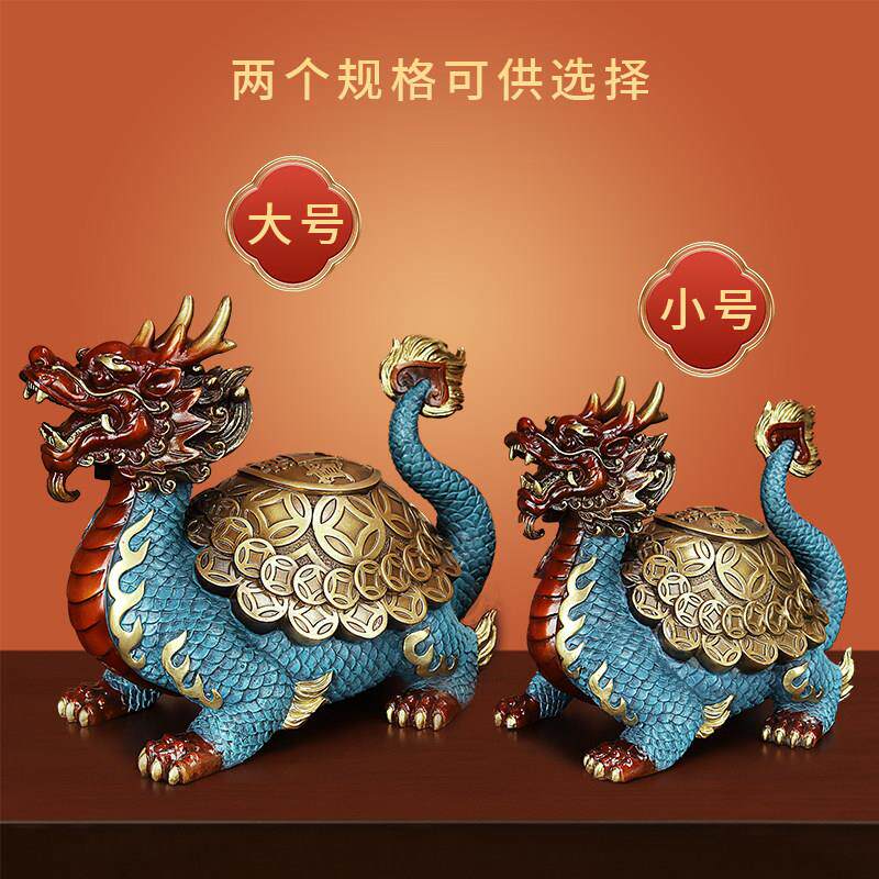 《财富龙龟》纯黄铜招财进宝金钱龙头龟摆件神兽客厅玄关装饰礼品