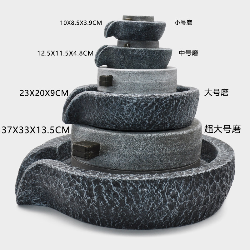 石磨流水摆件盆景假山喷泉鱼缸树脂仿真水车小石磨盘转运招财配件