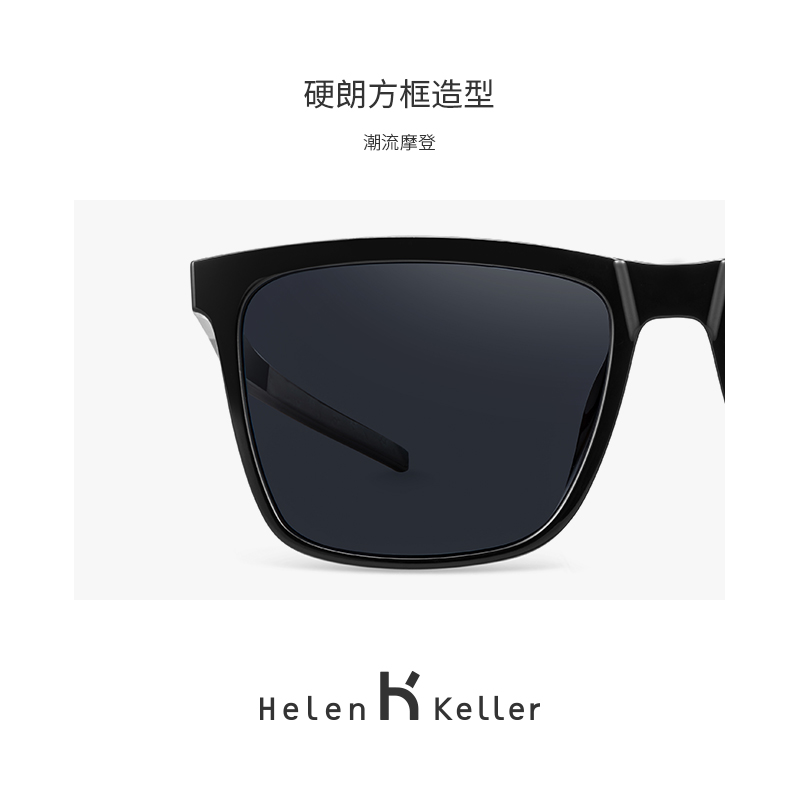 海伦凯勒2025年新款太阳镜男韩版网红方框防紫外线圆脸墨镜H8957