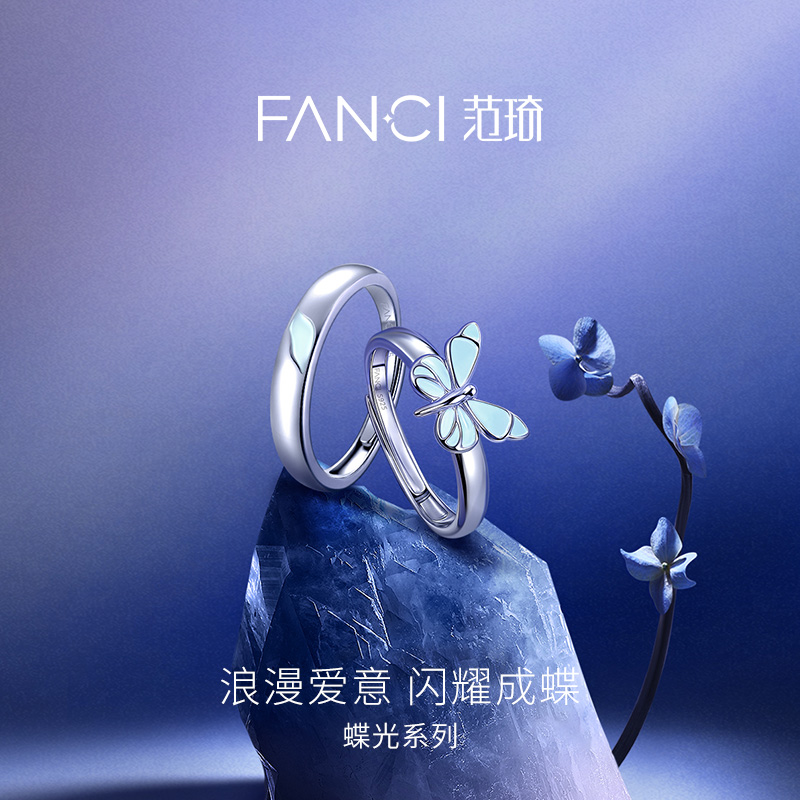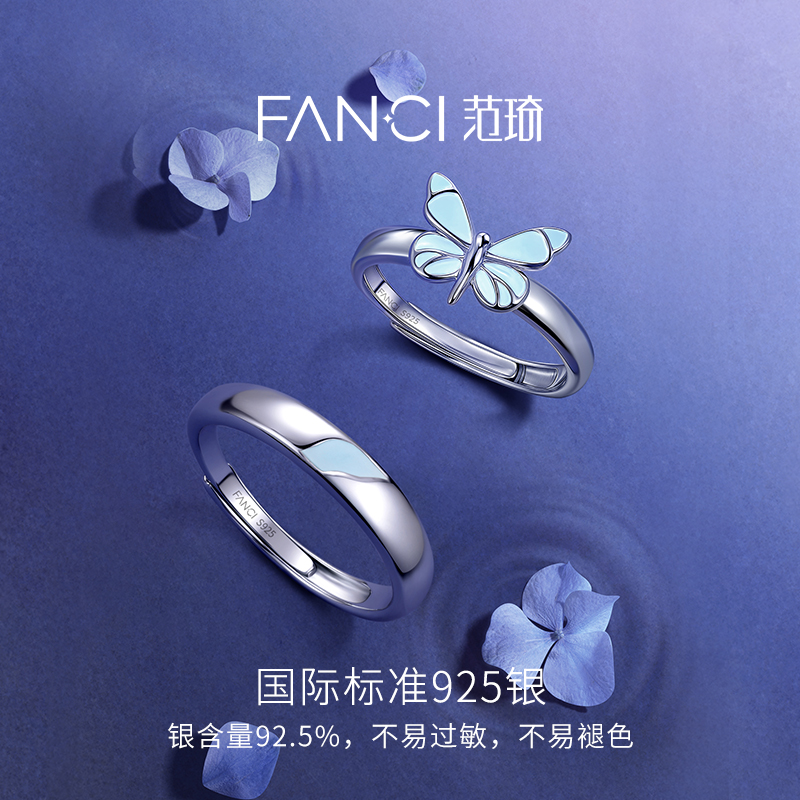 Fanci范琦蝶光情侣对戒S925银戒指ins风夜光蝴蝶小众送女友礼物