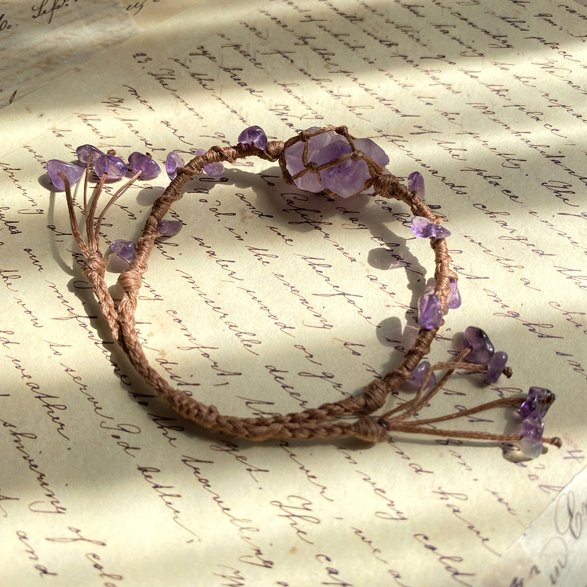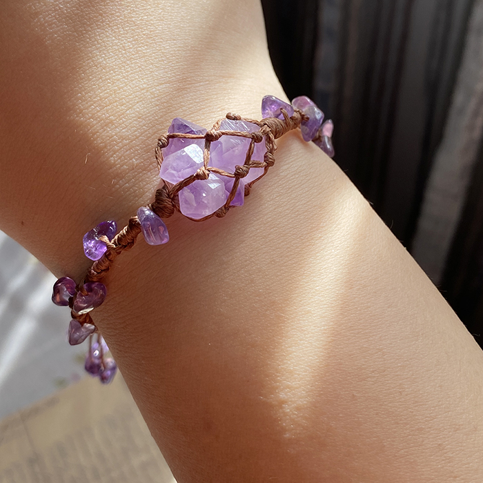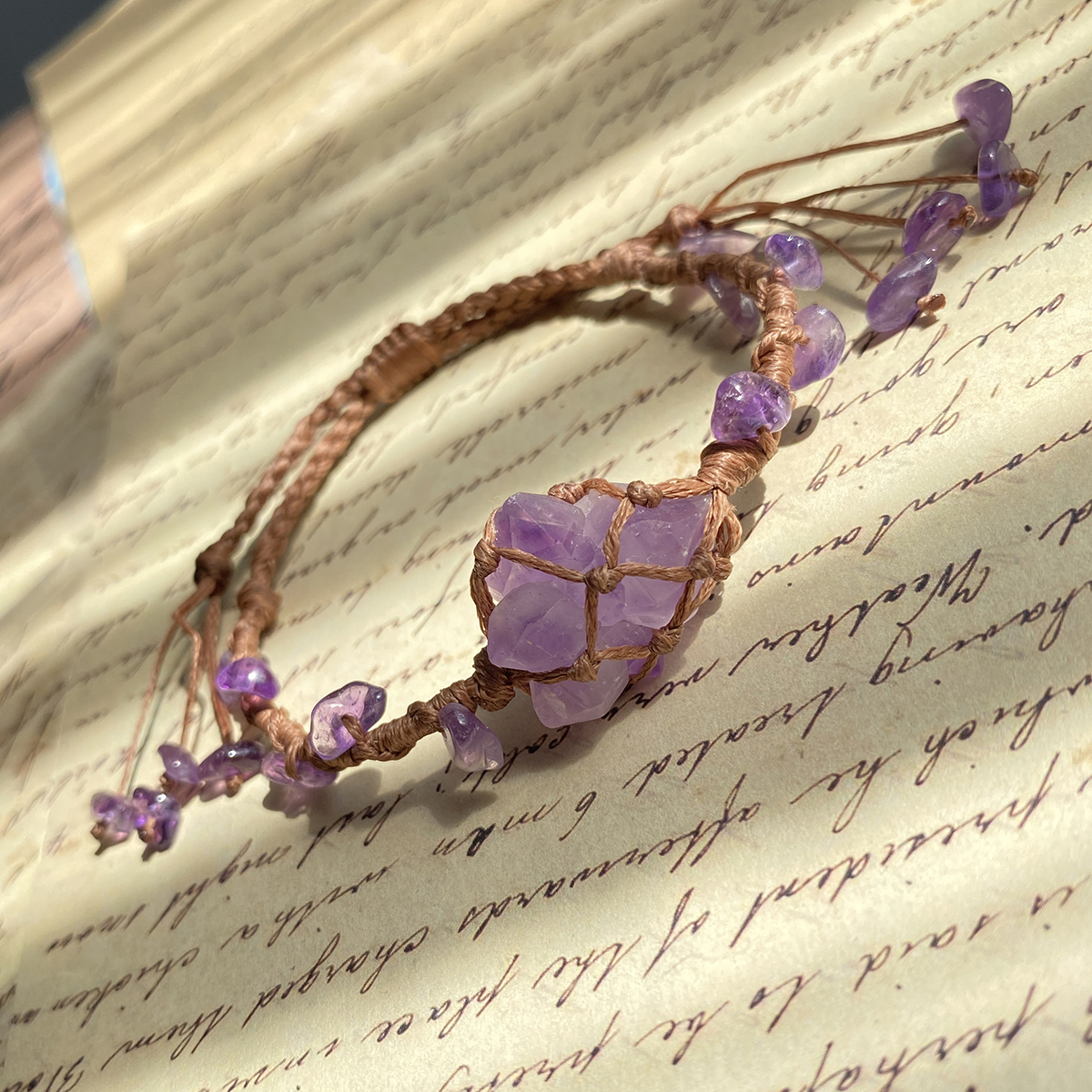 macrame手工编织原石手链紫水晶萤石天然网兜百搭款新款情侣手绳