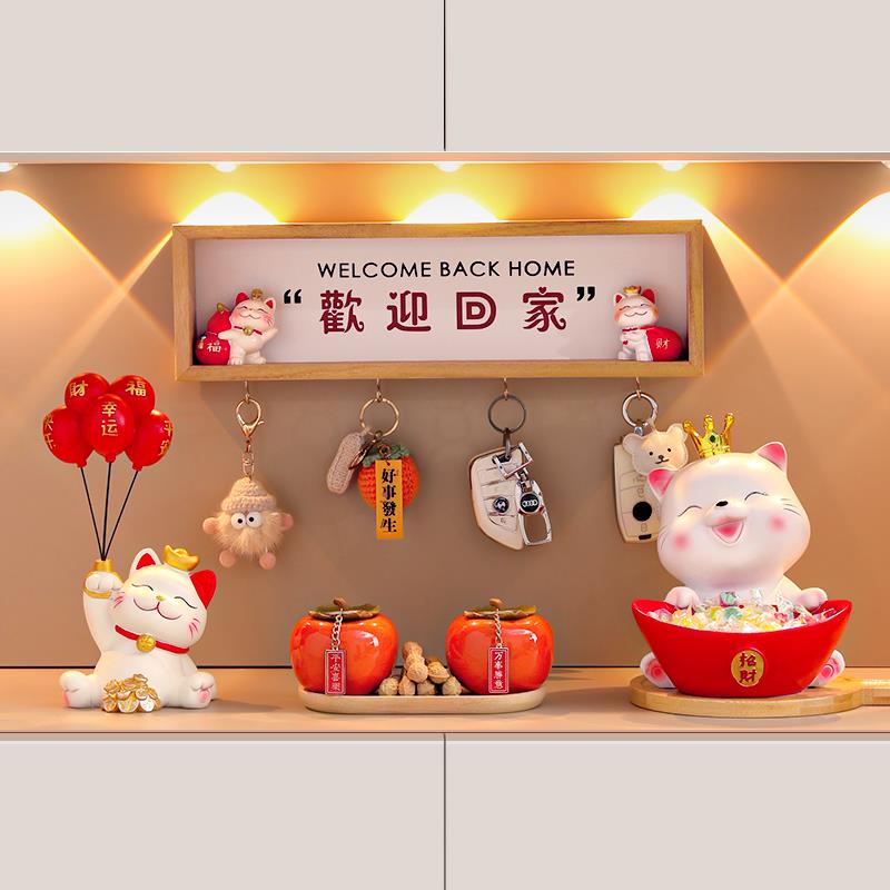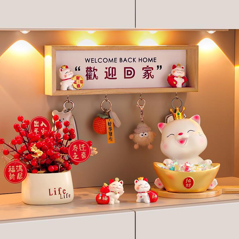 招财猫入户钥匙收纳玄关摆件门口鞋柜客厅家居装饰品乔迁新居礼品