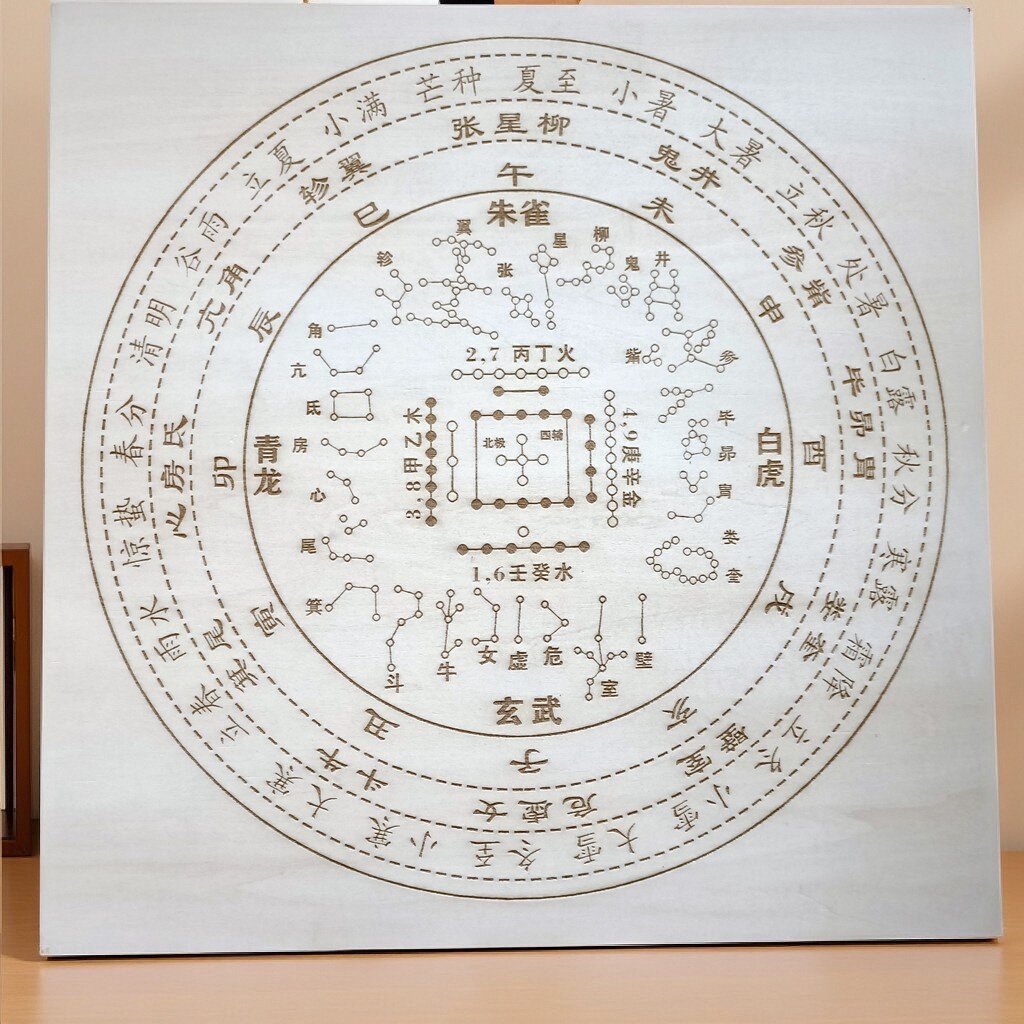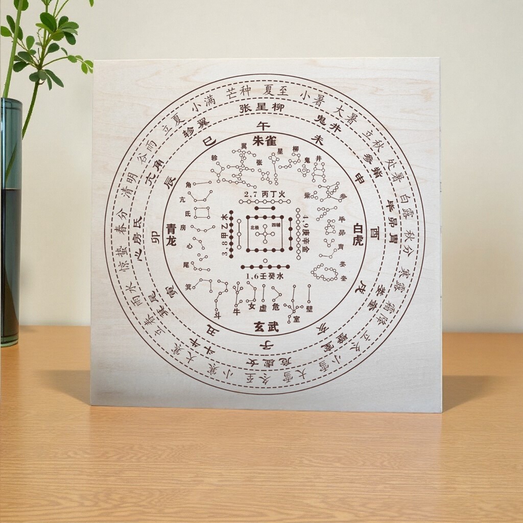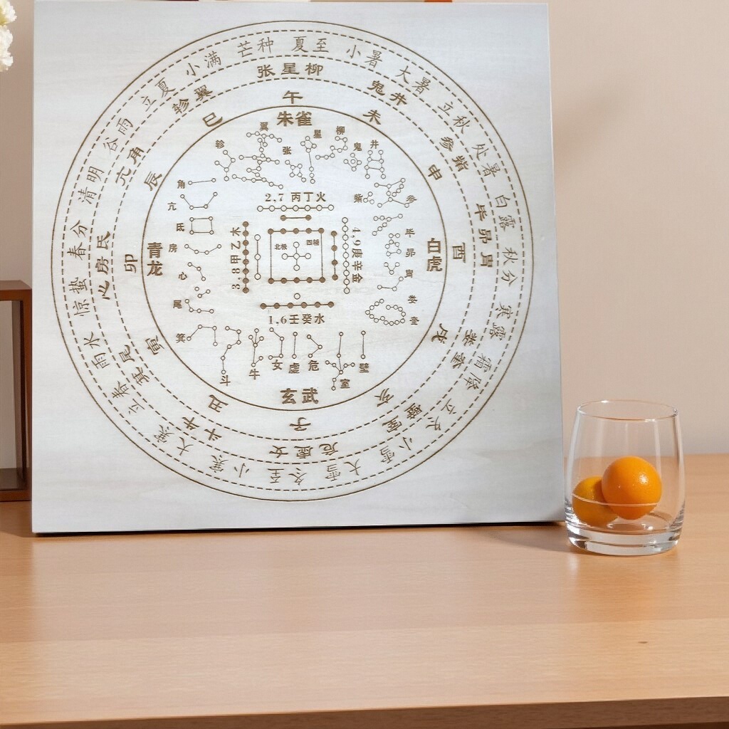 复刻经典二十八星宿节气河图地支方位图传统文化方正实木摆件30cm