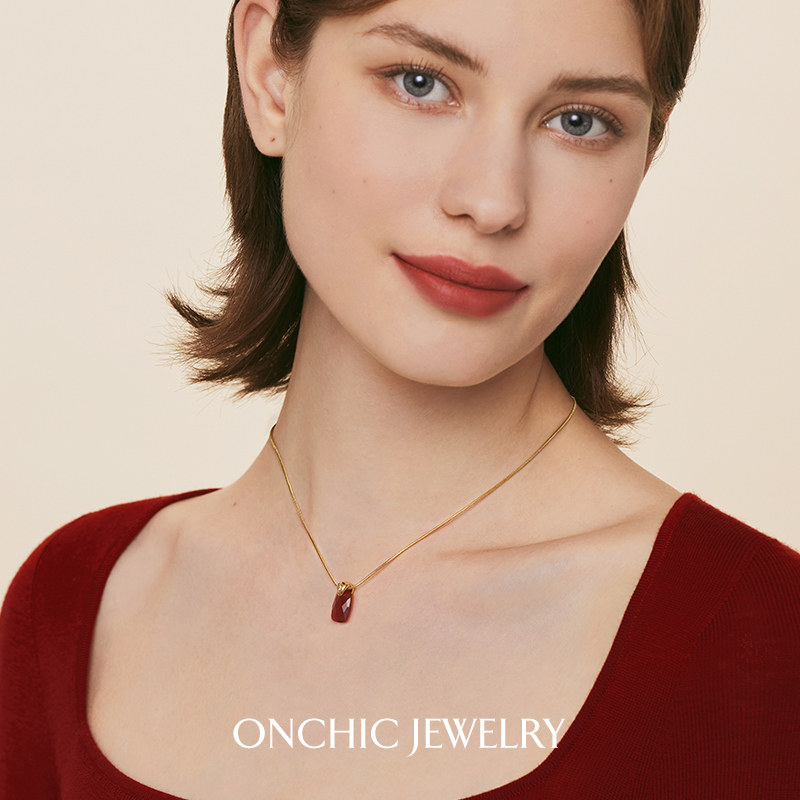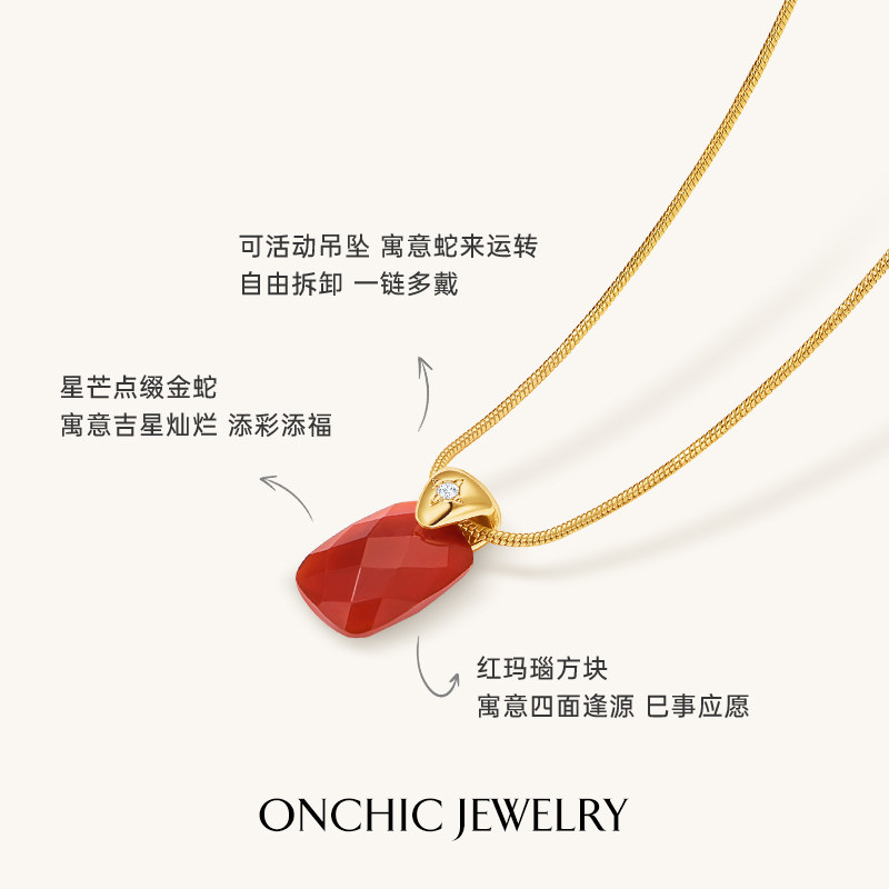 明星同款Onchic巳方灵蛇项链女高级感红玛瑙吊坠红色本命年礼物女