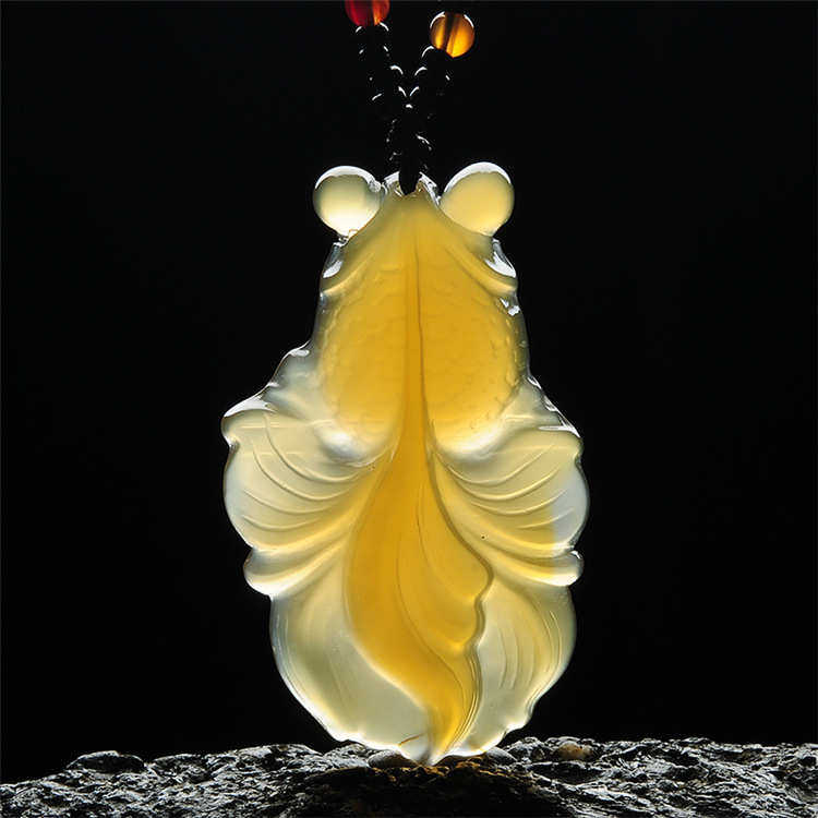 批发巴西玛瑙纯黄色小金鱼吊坠 金玉满堂吊坠