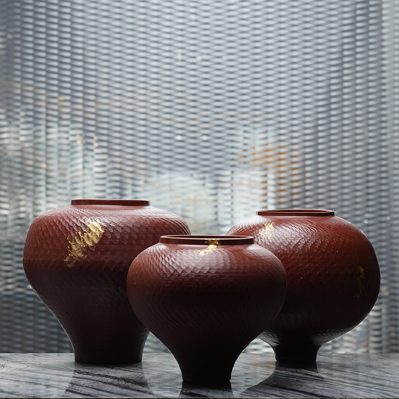 新中式创意红色陶瓷花瓶摆件客厅茶几餐边柜桌面插花花器软装饰品