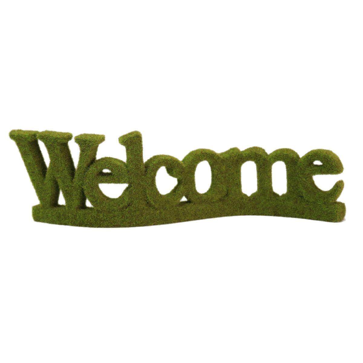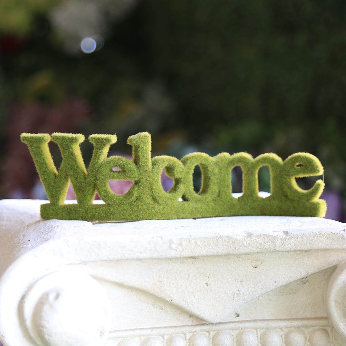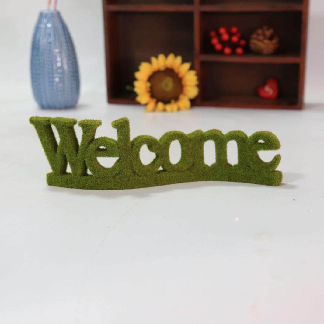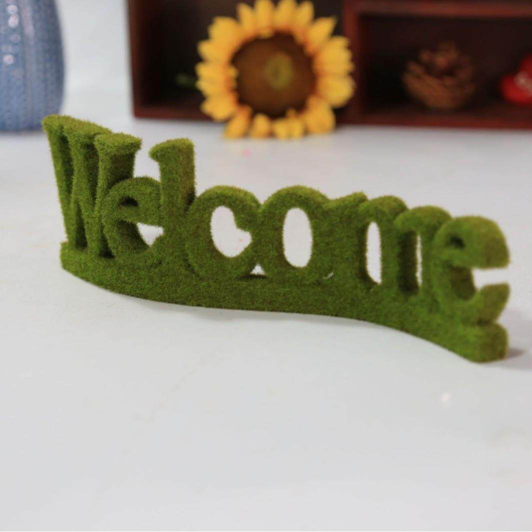 跨境花园客厅欢迎门牌装饰英文仿真欧式树脂绿色植绒WELCOME摆饰