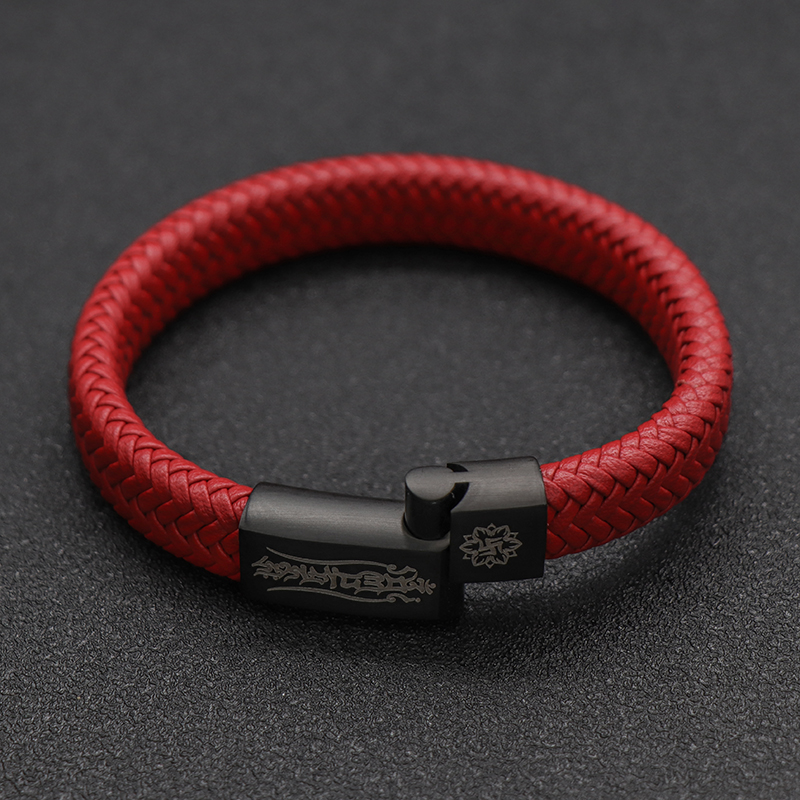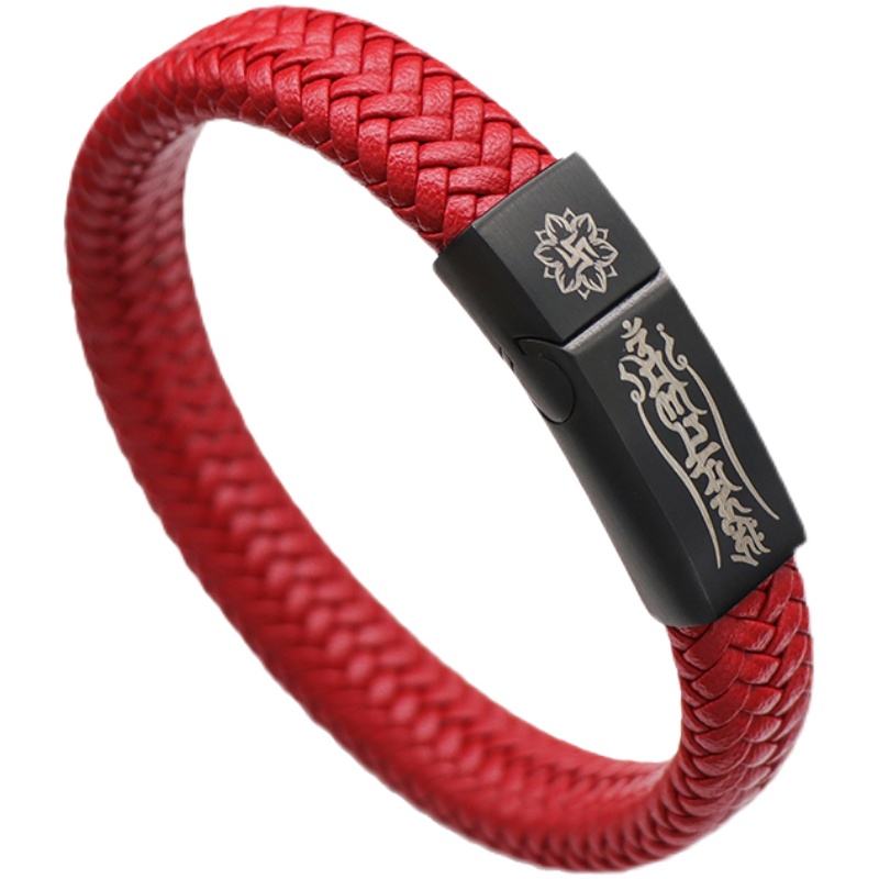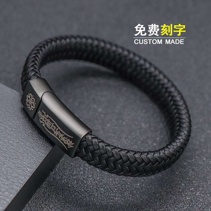 复古黑色皮绳编织手链个性梵文六字真言创意手饰精致手环礼物刻字