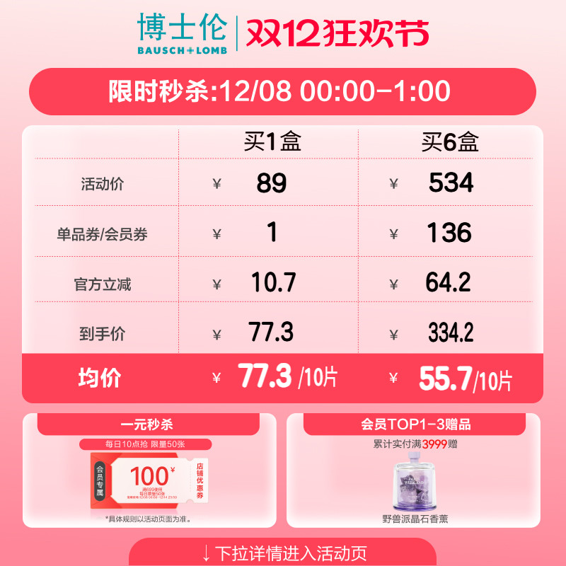 [买6赠4]博士伦美瞳日抛10片甜酷中性风隐形近视眼镜小直径Unii
