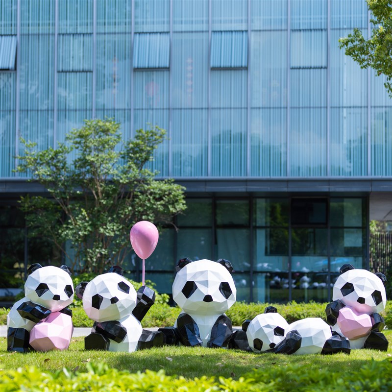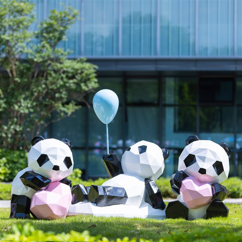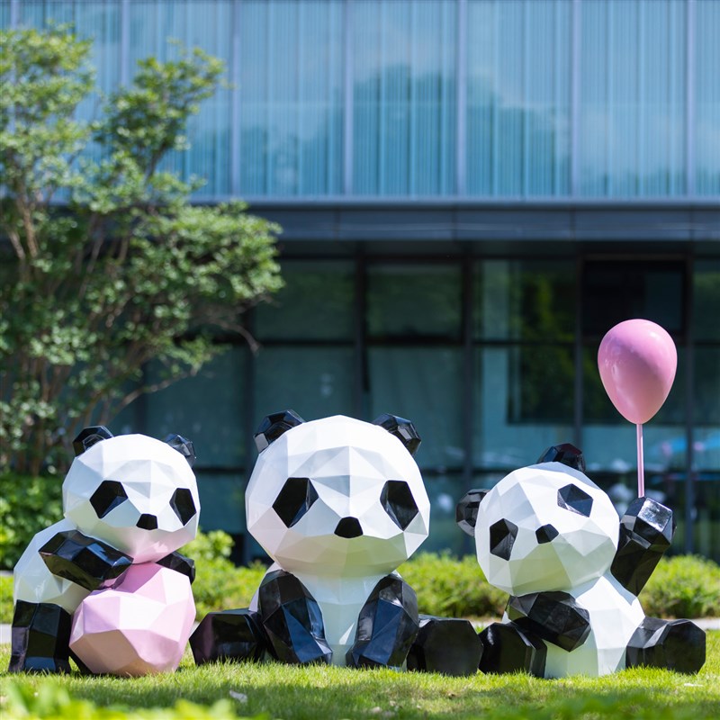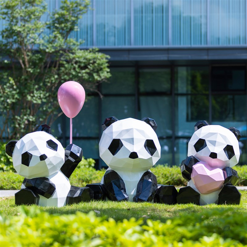 几何玻璃钢大熊猫动物模型雕x塑户外园林景观小区草坪装饰品摆件