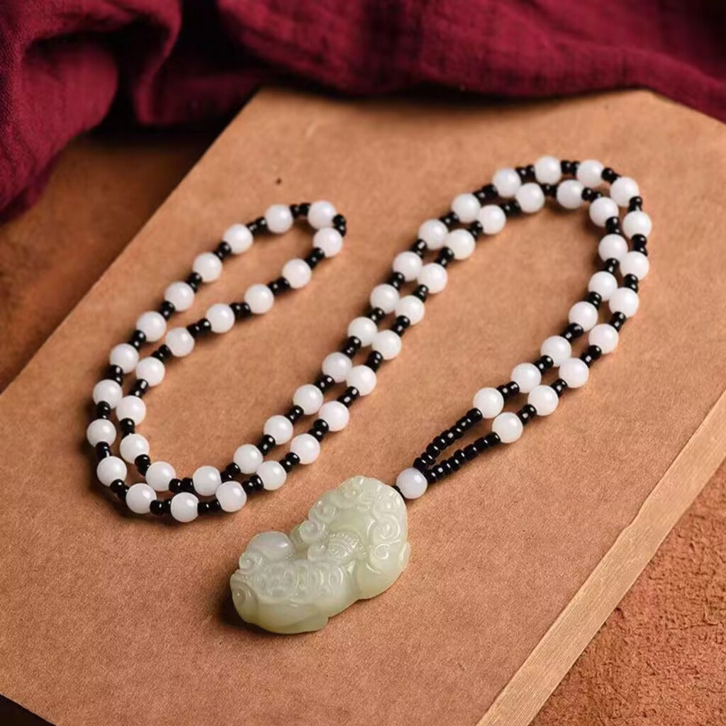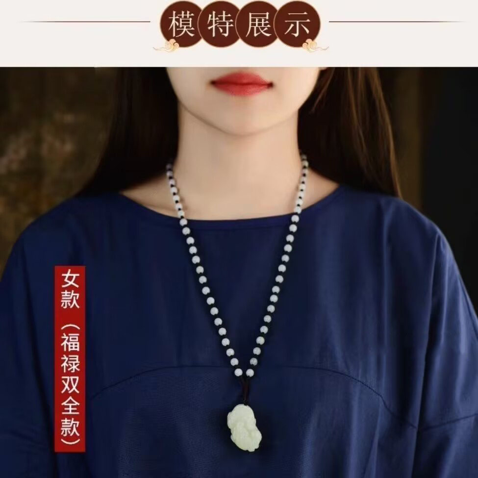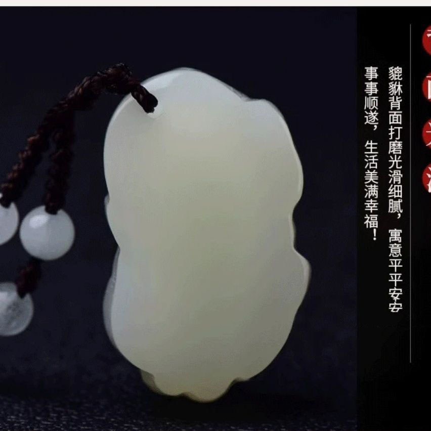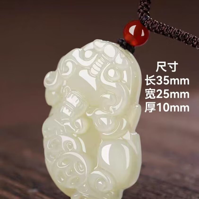 和田白色玉貔貅吊坠男款女项链玉石财源招财霸王貔貅编织挂件礼物