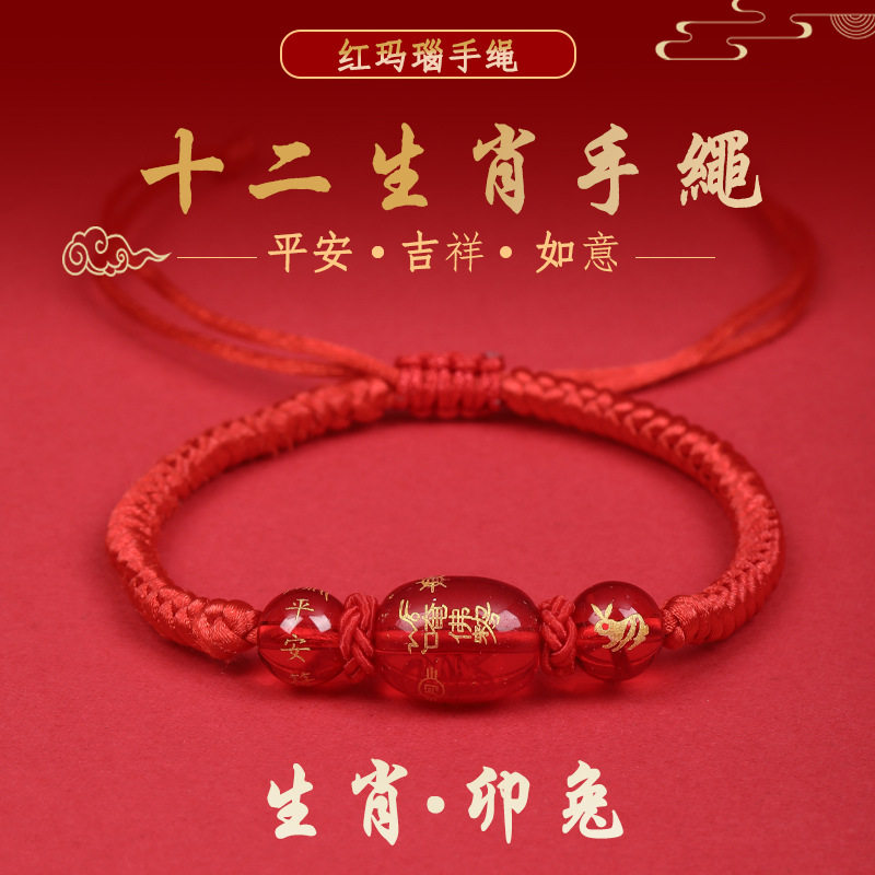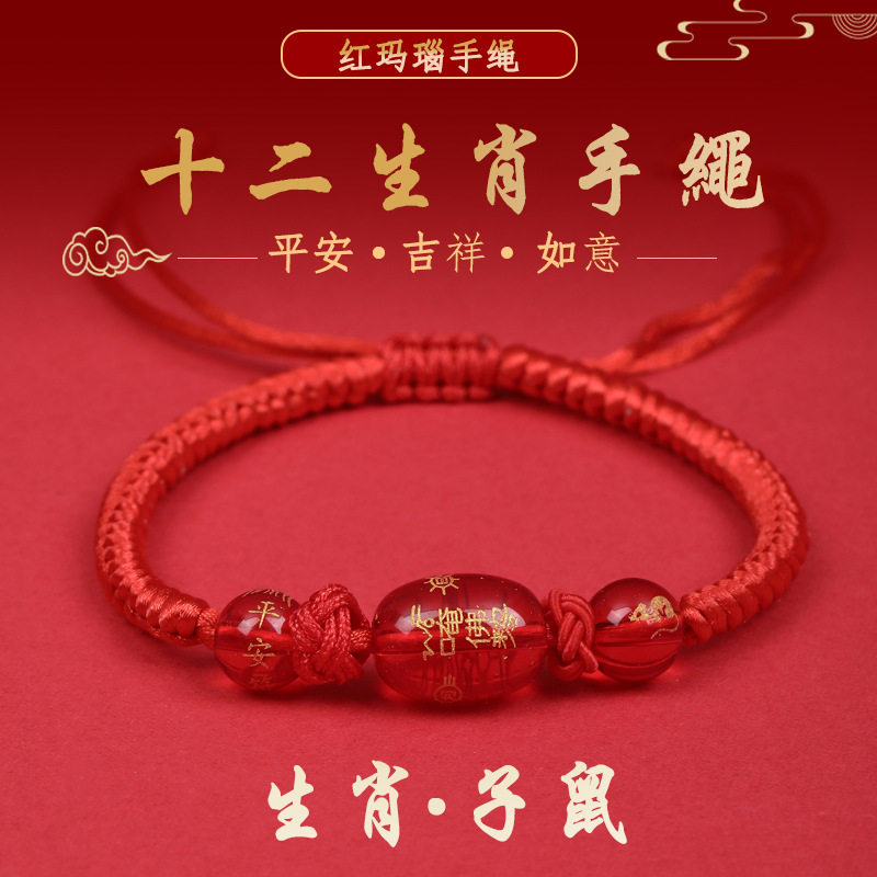 本命年红绳手链2026马年男女通用礼物平安珠十二生肖手工编织手绳