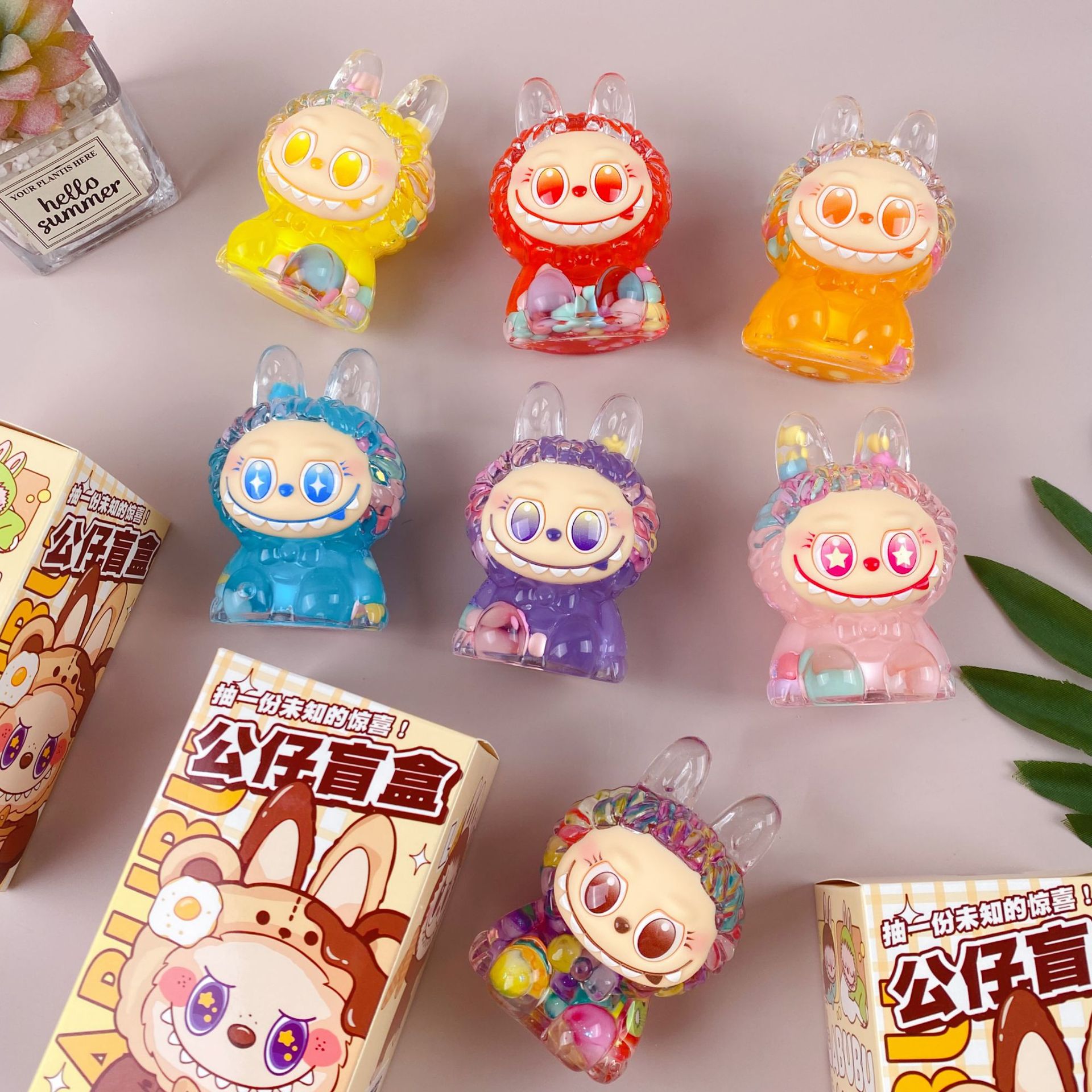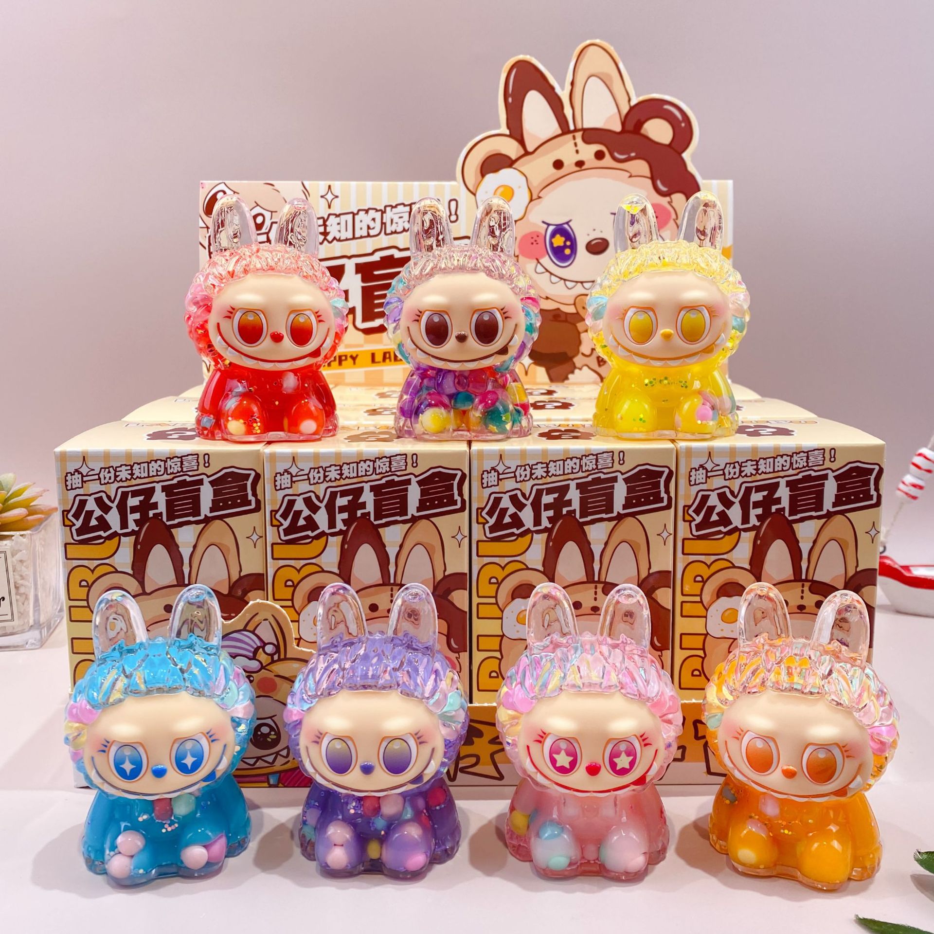 新款拉布布可爱盲盒入油流沙泡珠摆件爆闪卡通礼物大摆件惊喜盲盒