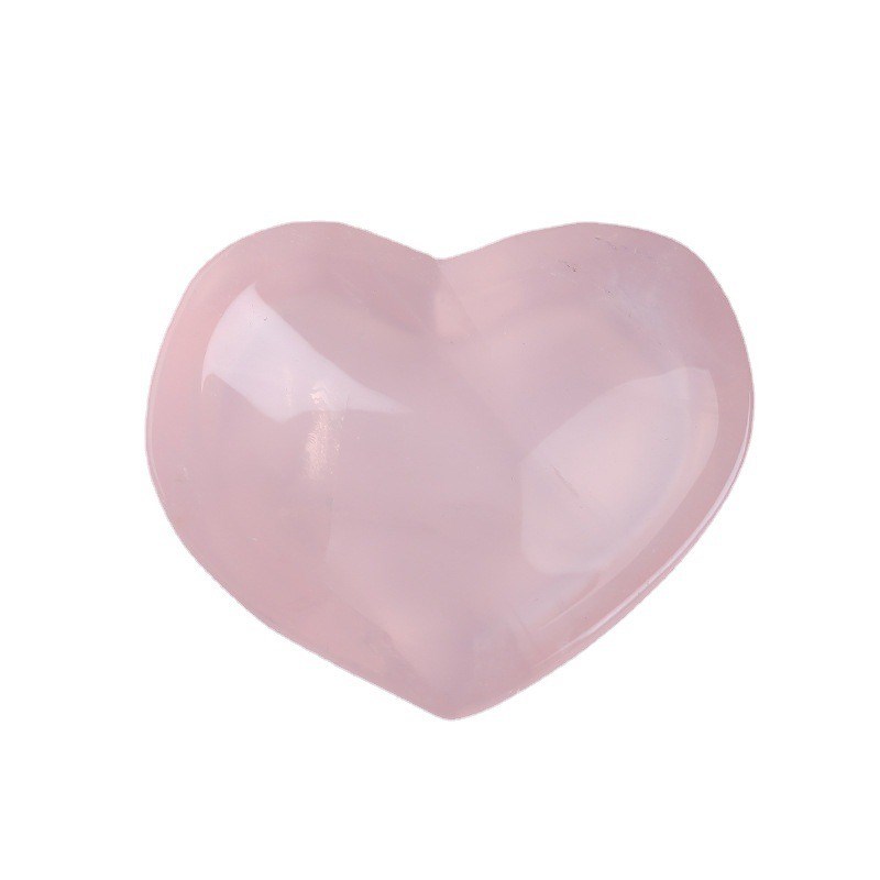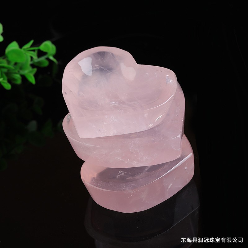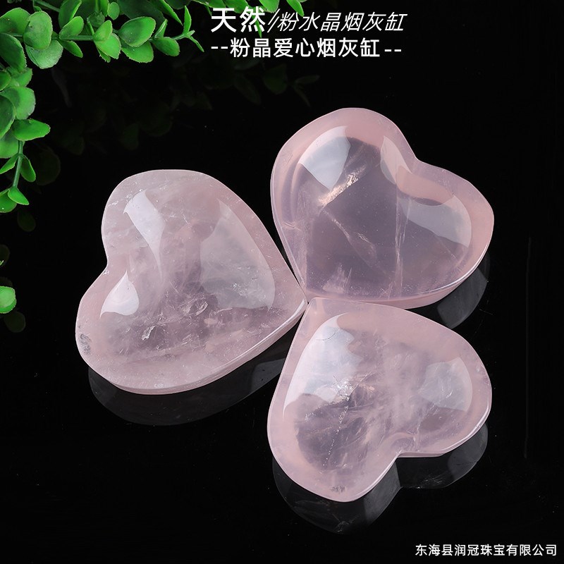 天然粉水晶爱g心碗烟灰缸 粉晶手工原石打磨爱心碗工艺品摆件