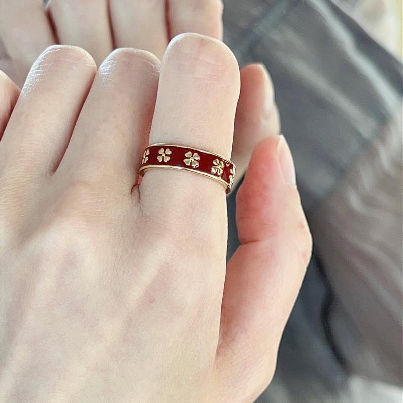 单身戒指女小众独特2025年新款潮生红色四叶草珐琅指环设计高级感