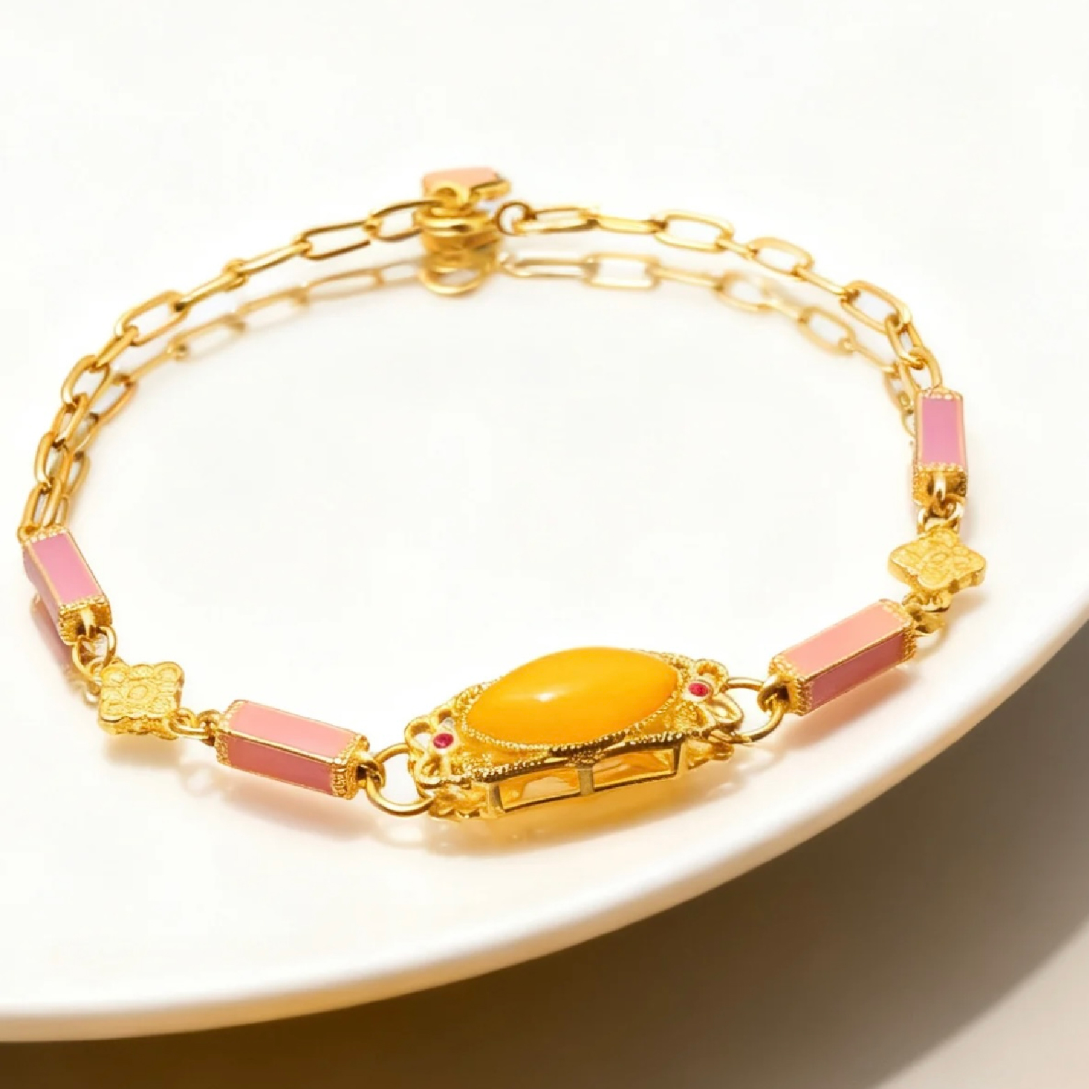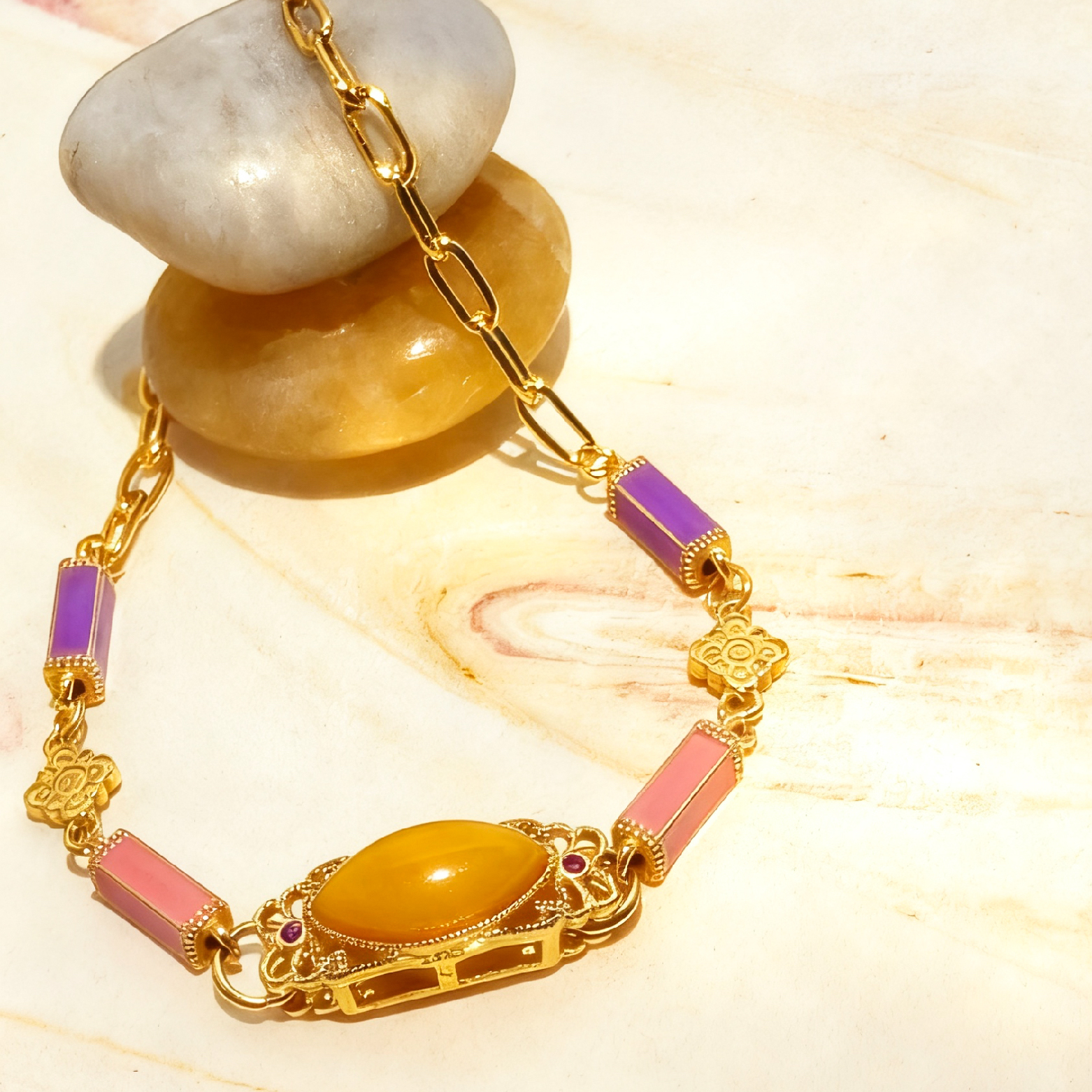 坤恩【启手造物】设计轻奢精致高级灵动气质珐琅鎏金蜜韵手链黄色