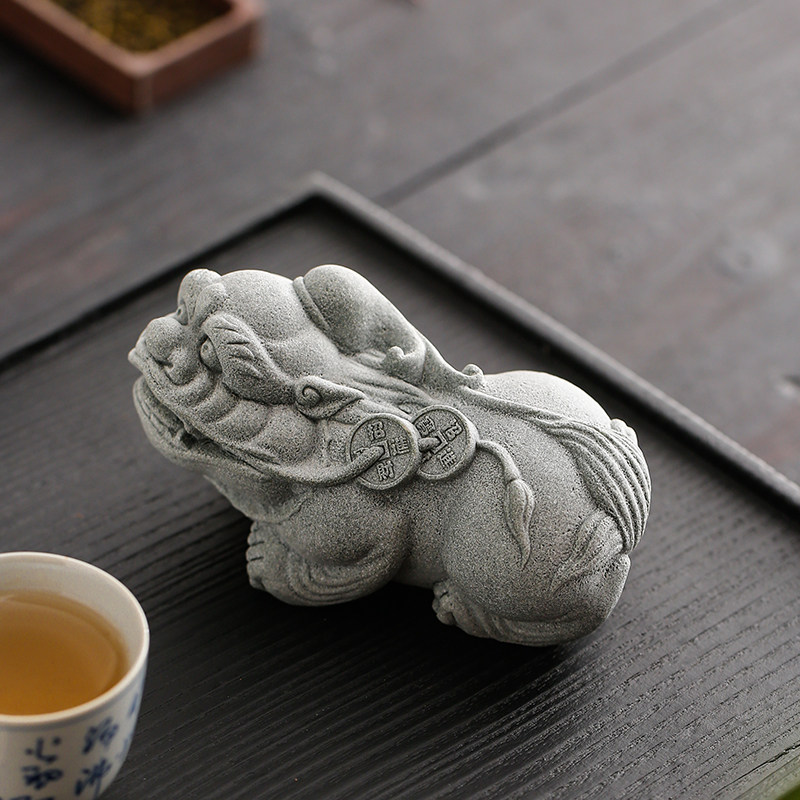 创意瑞兽招财貔貅一对青砂石茶宠摆件复古中式客厅鱼缸造景装饰品