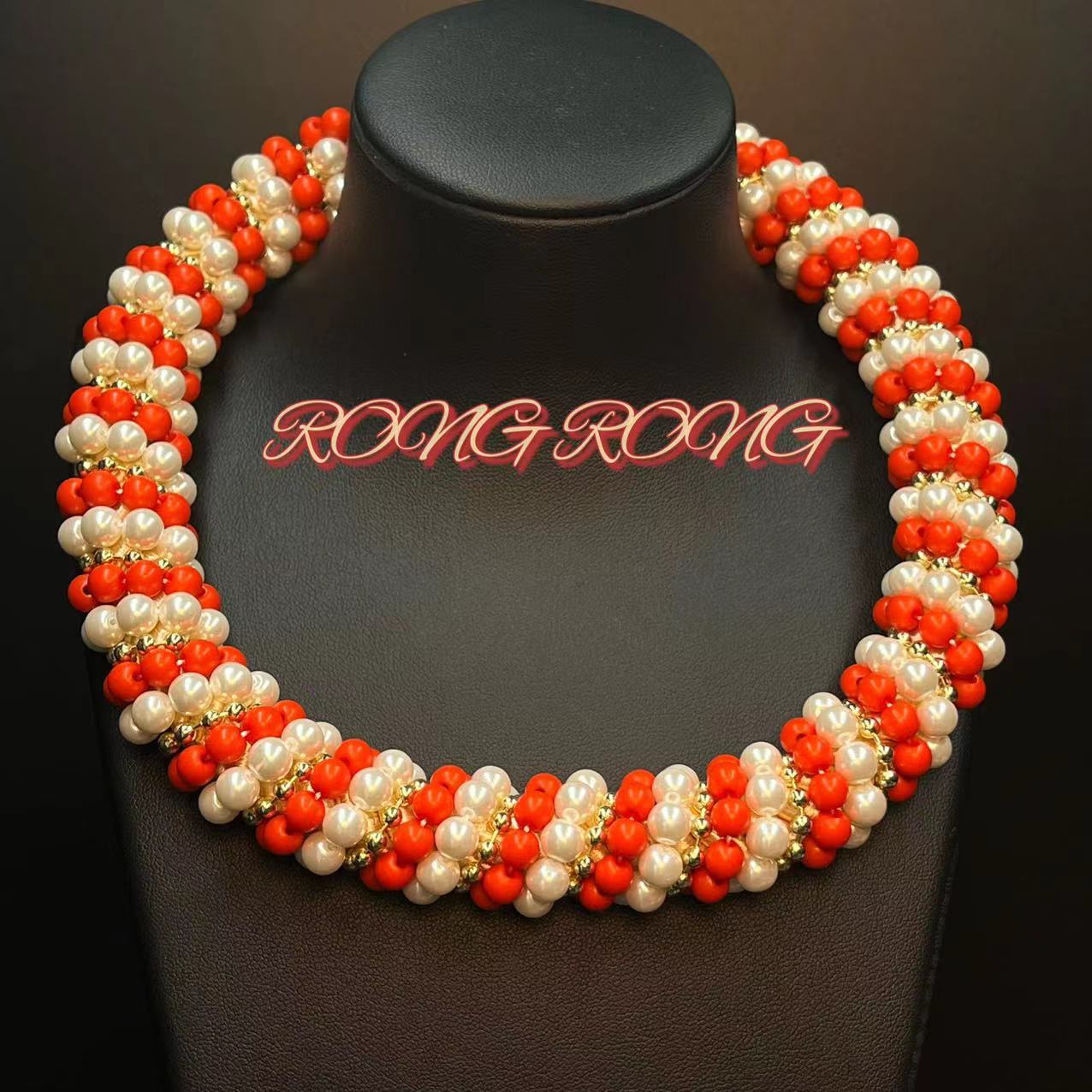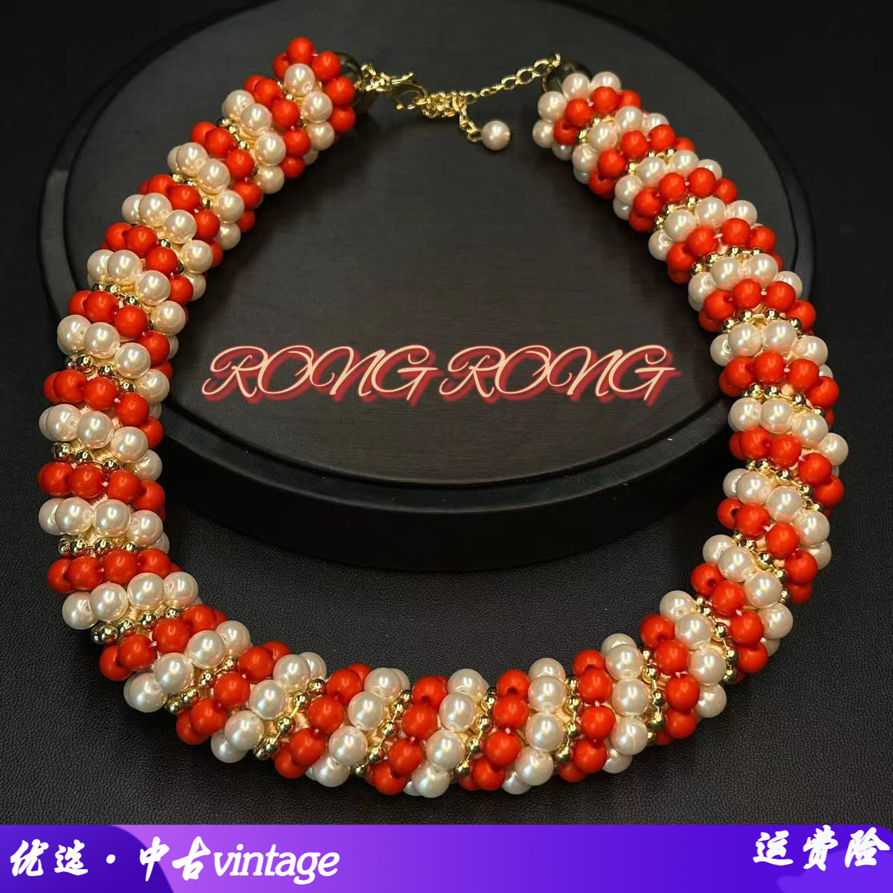 中古宫廷风复古意大利老奶奶红白色圆珠缠绕短款项链创意浮雕欧美