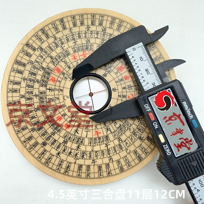 京文堂万安罗盘4.5英寸11层三合徽盘徽州新安手工木制徽州罗经盘