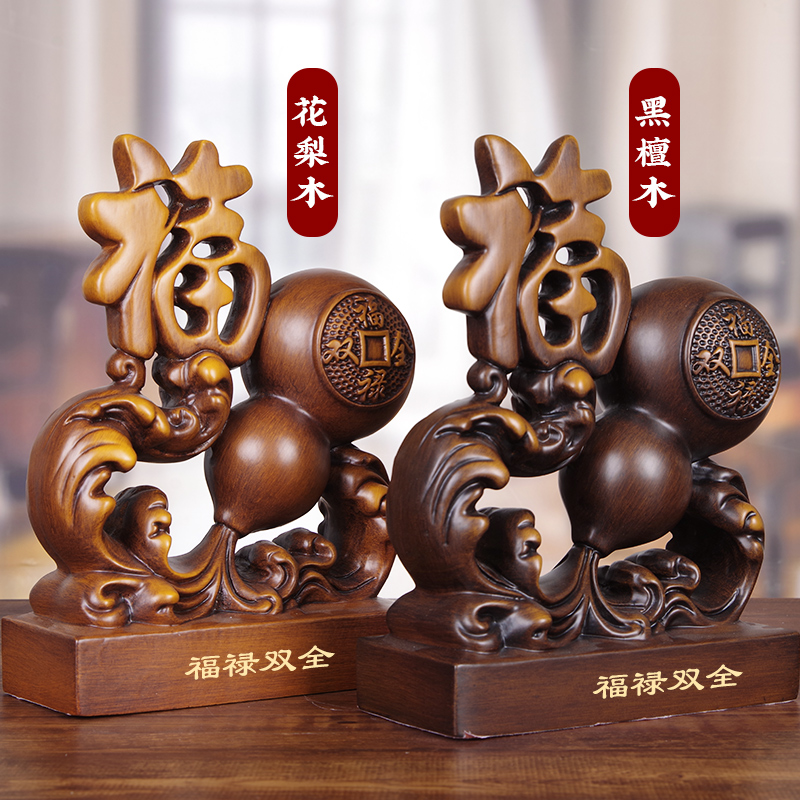 实木雕福禄双全葫芦摆件福气临门家居轻奢装饰送朋友新房搬家礼品