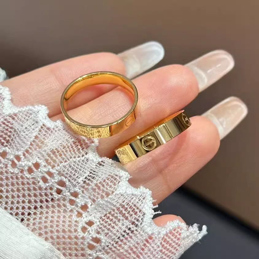 黄金色戒指男女款素圈简约经典轻奢高级感一字4mm5mm指环情侣对戒