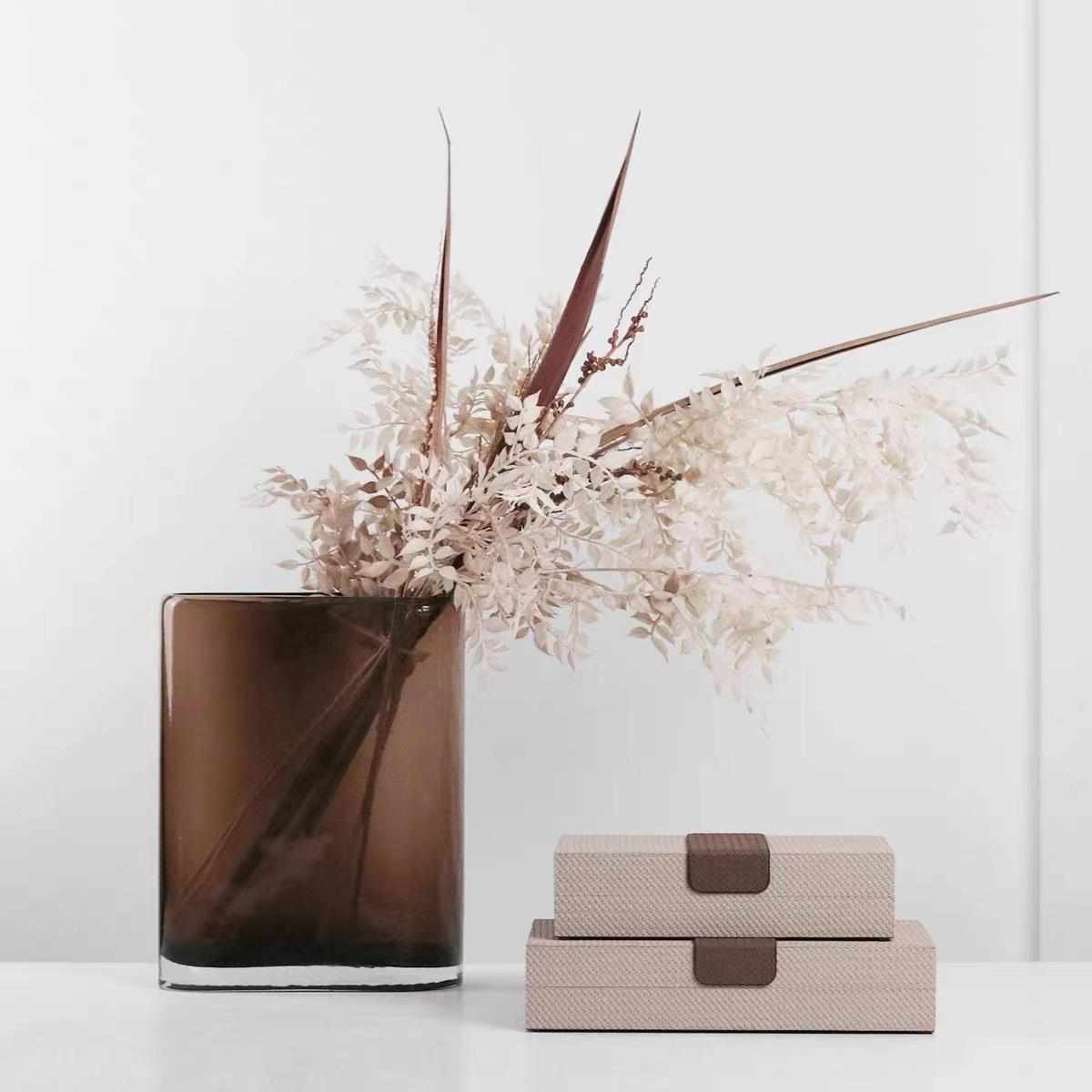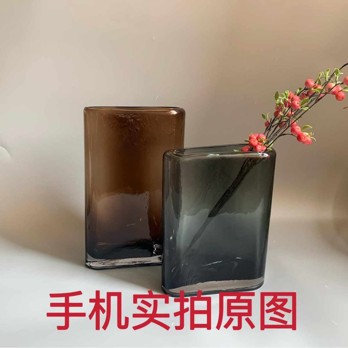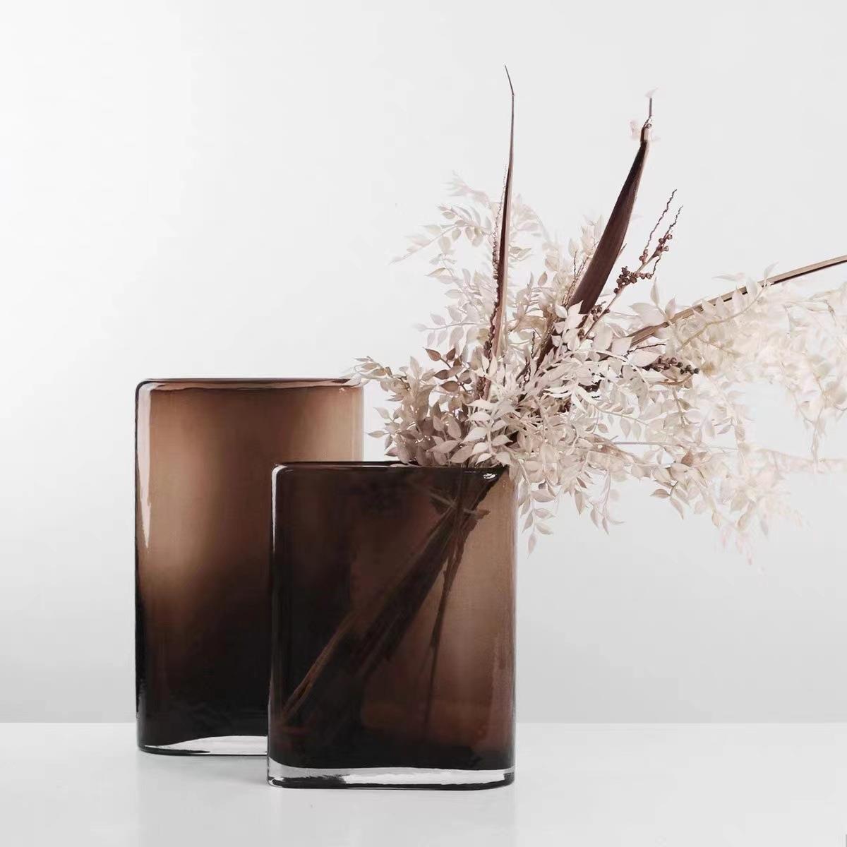 现代简约大口径琉璃花器咖色水培花瓶客厅卧室插花装饰品摆件