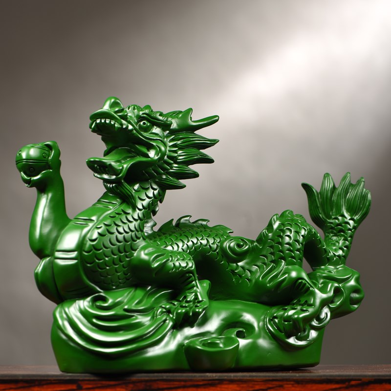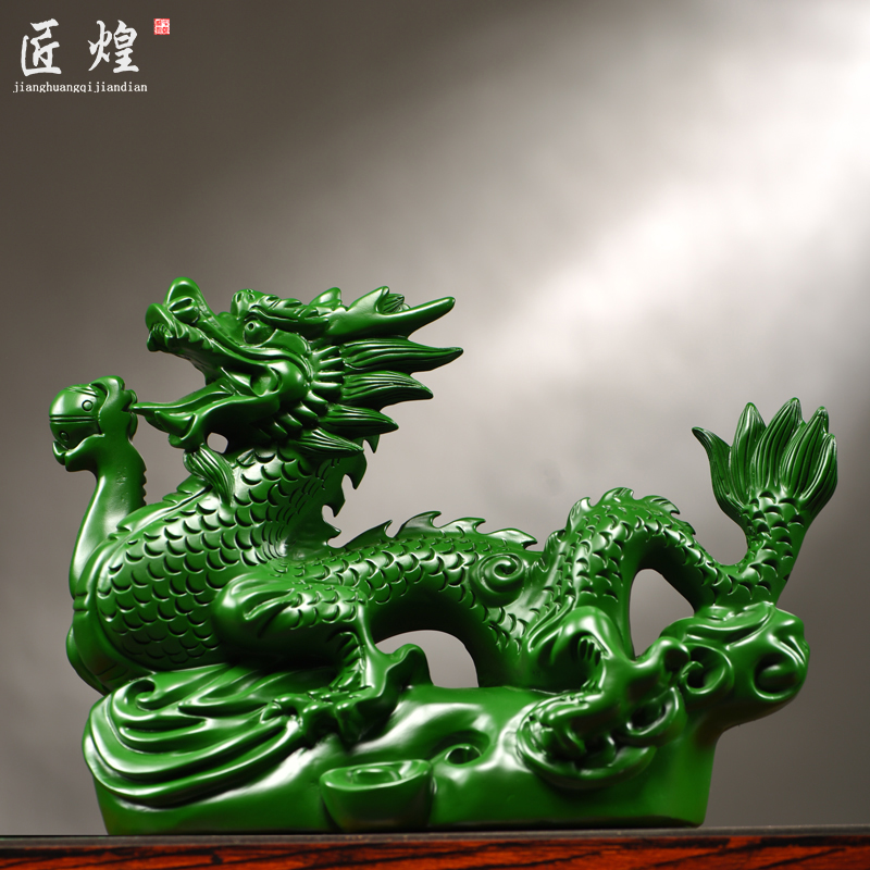 绿色实木雕刻龙摆件十二生肖龙家居客厅电视柜装饰新居送礼工艺品