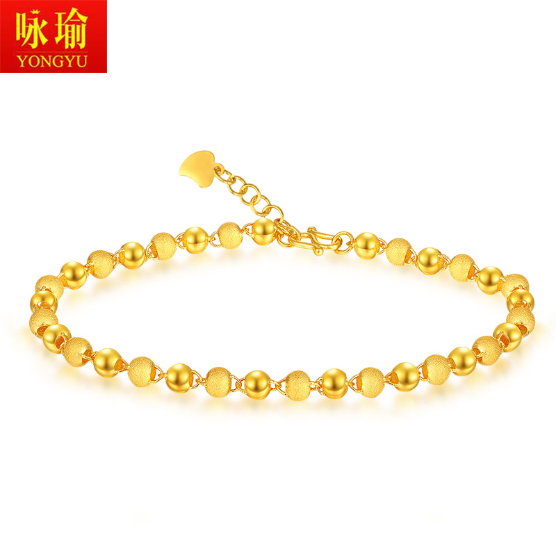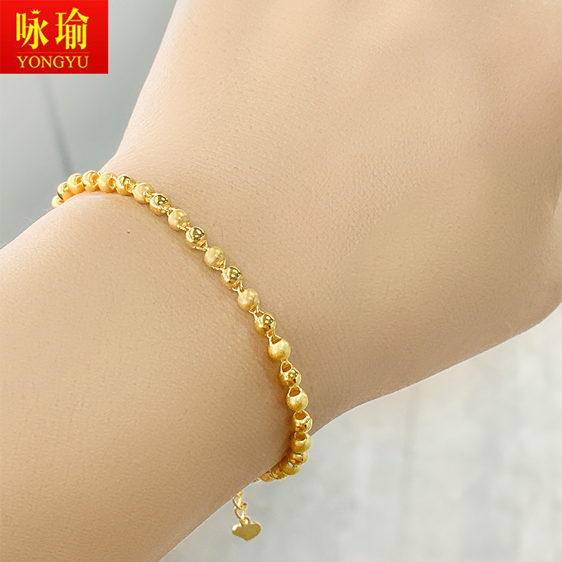 黄金手链 女新款转运珠光砂金珠链子足金999磨砂真金素链纯金手串