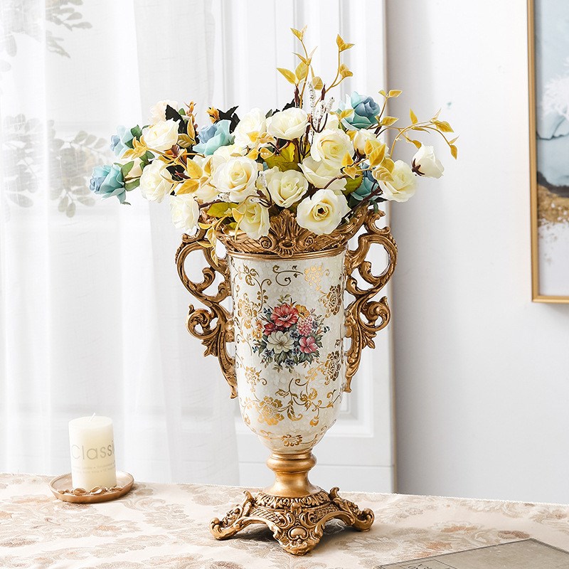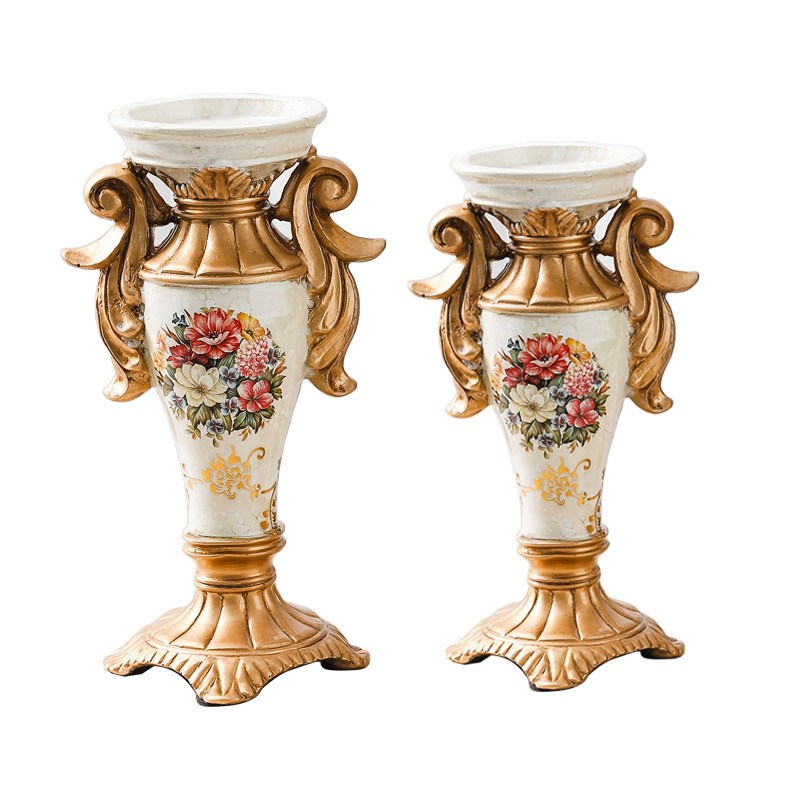 欧式桌面摆件白色复古插花树脂花瓶书架电M视柜创意家居装饰品摆