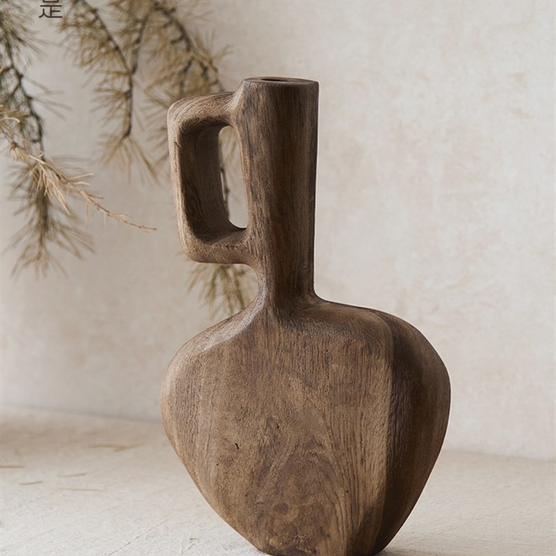 如/Wabi风格复古花瓶装饰品B&B酒店餐厅客厅创意装饰实木旧