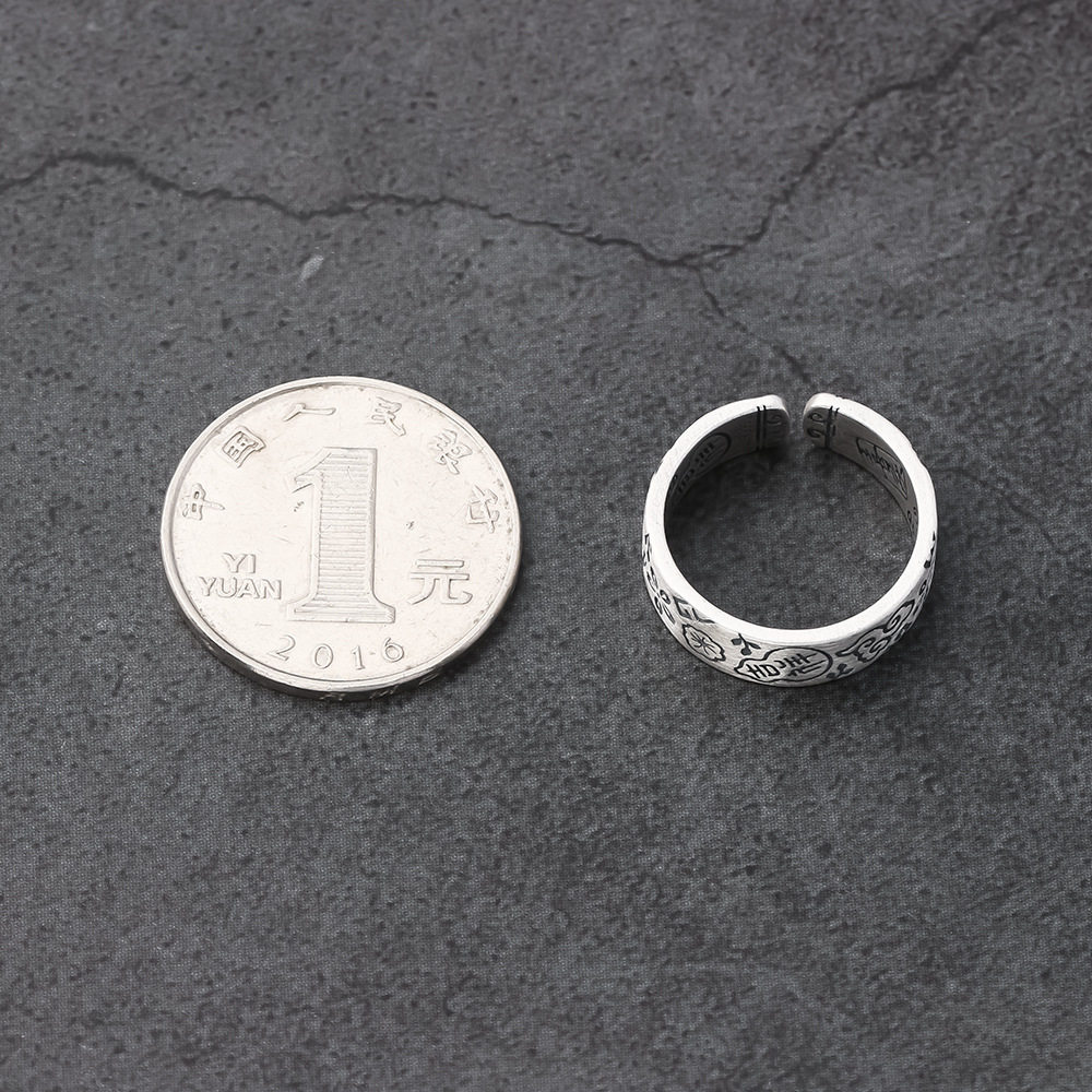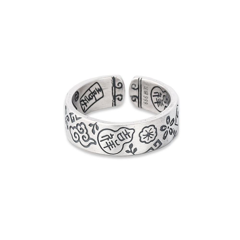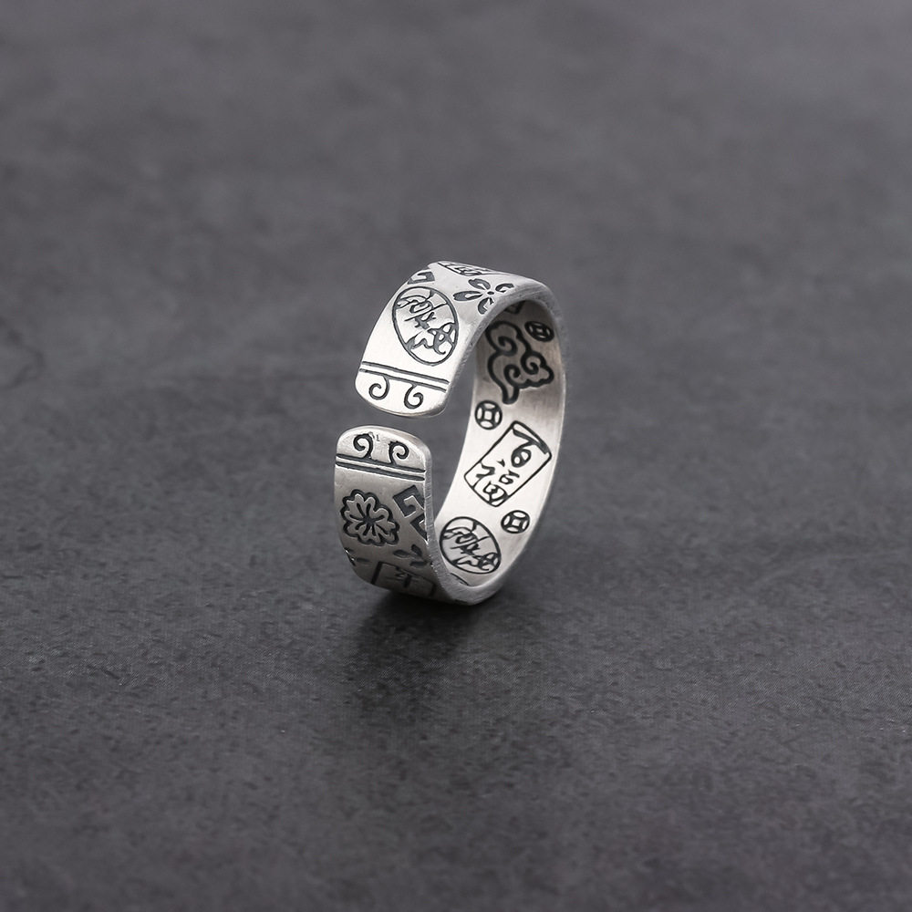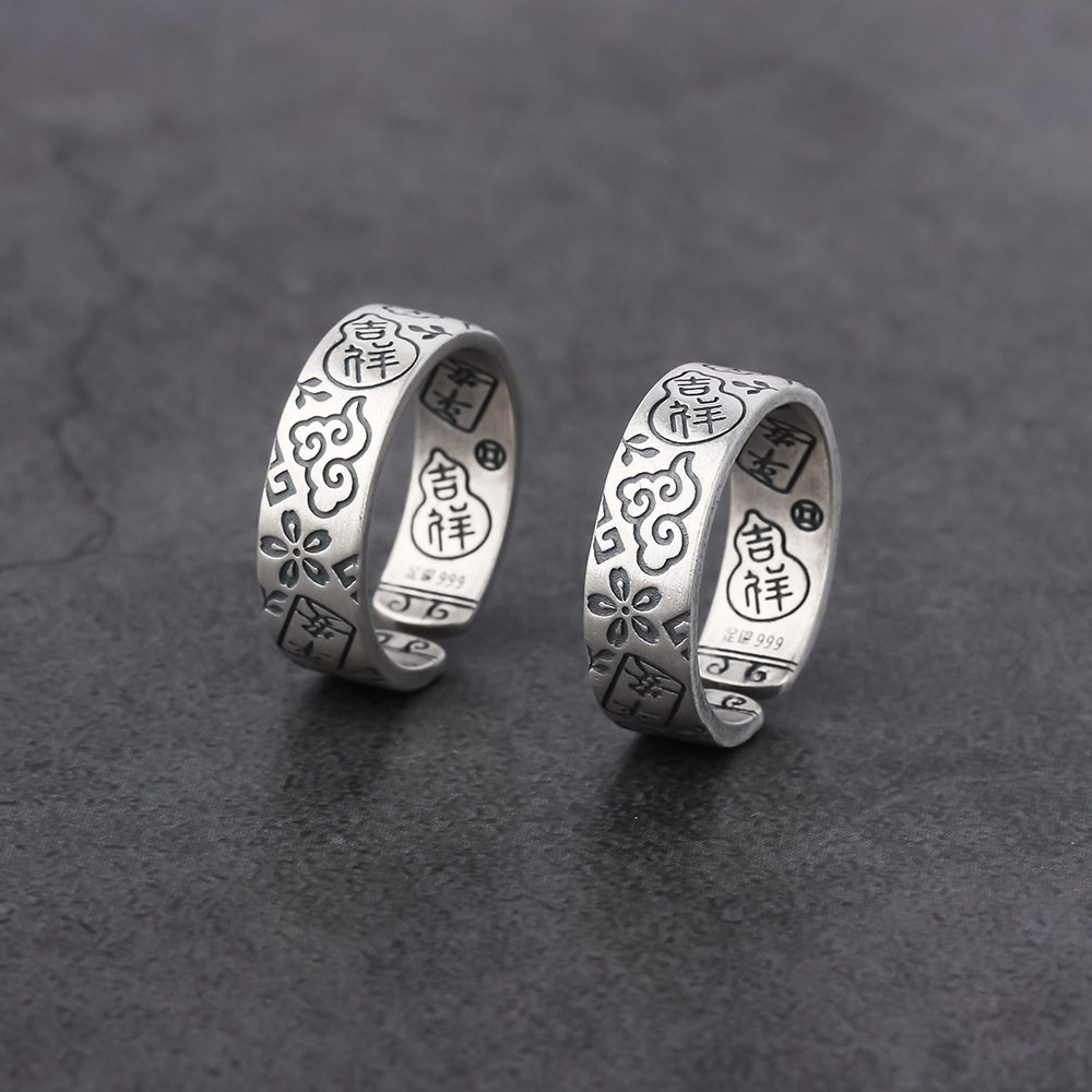 999足银吉祥如意吉言戒指设计纯银宽版开口指环女中国风食指戒