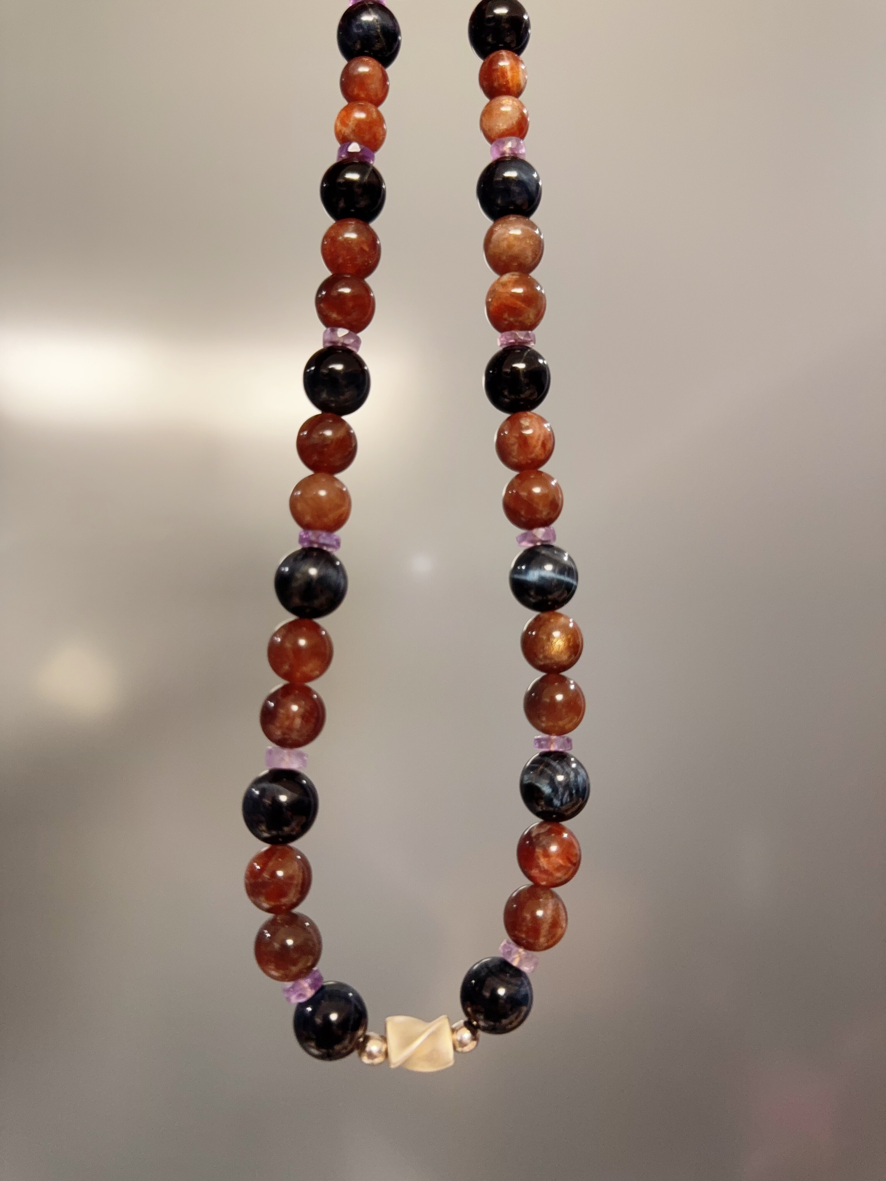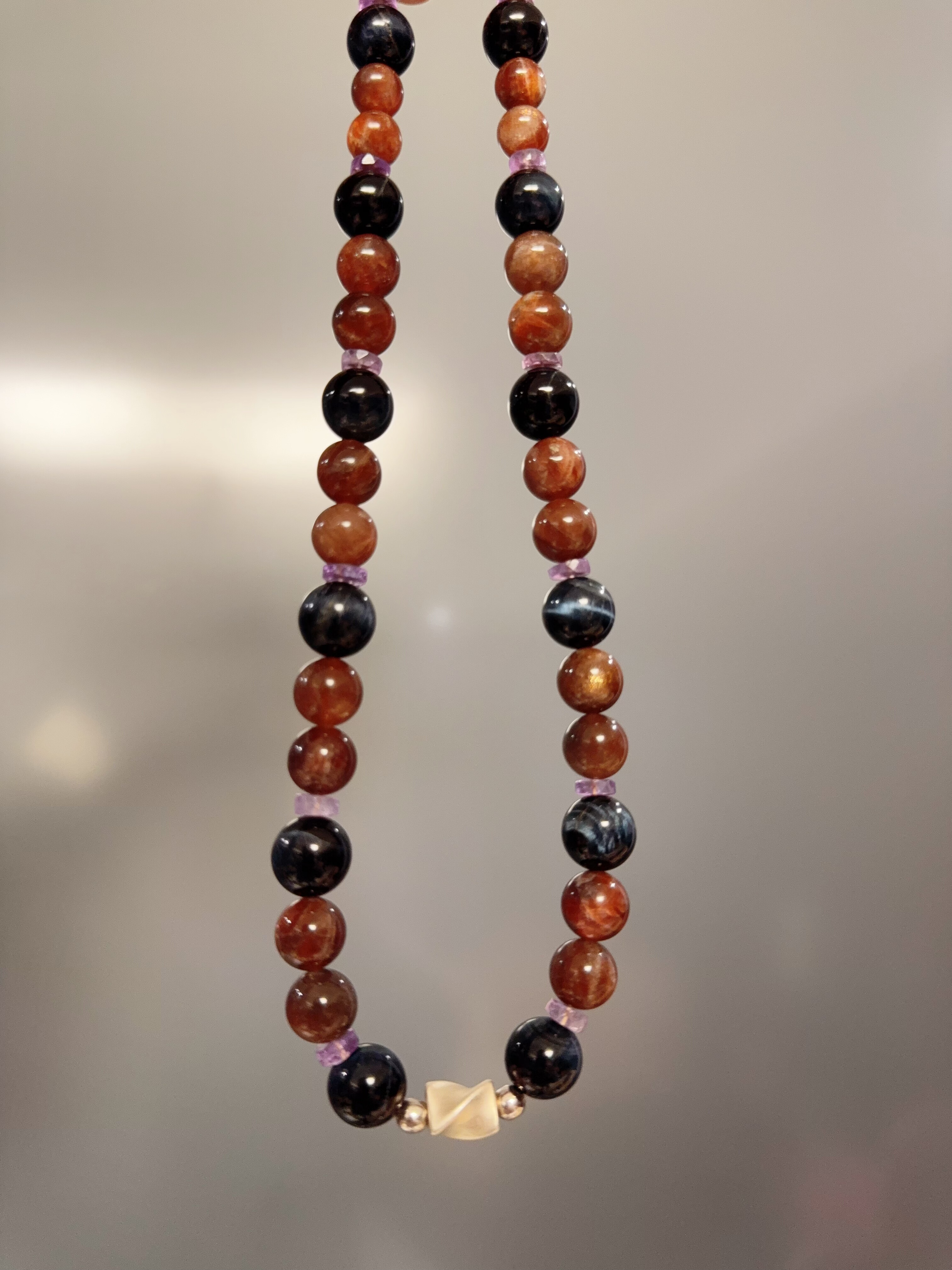天然水晶金太阳紫水晶虎眼时尚百搭串珠原创S925银毛衣链项链46cm