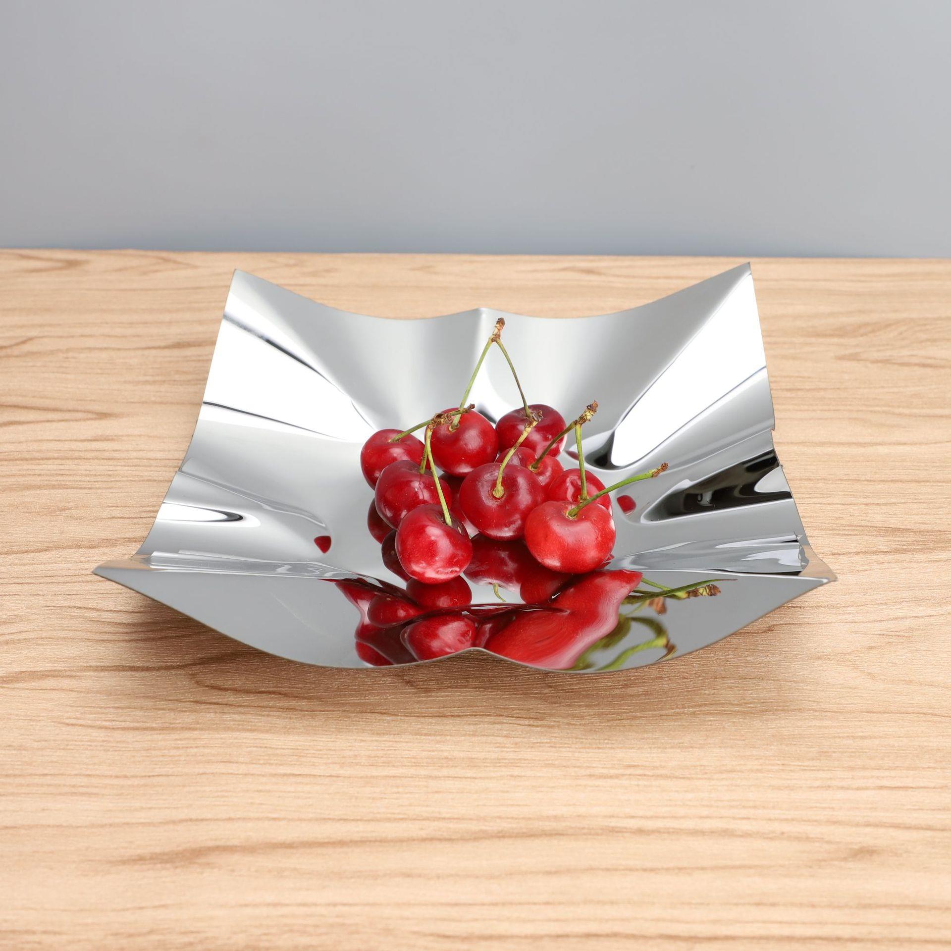 现代简约不锈钢收纳果盘摆件样板房客厅茶几餐桌售楼部家居装饰品