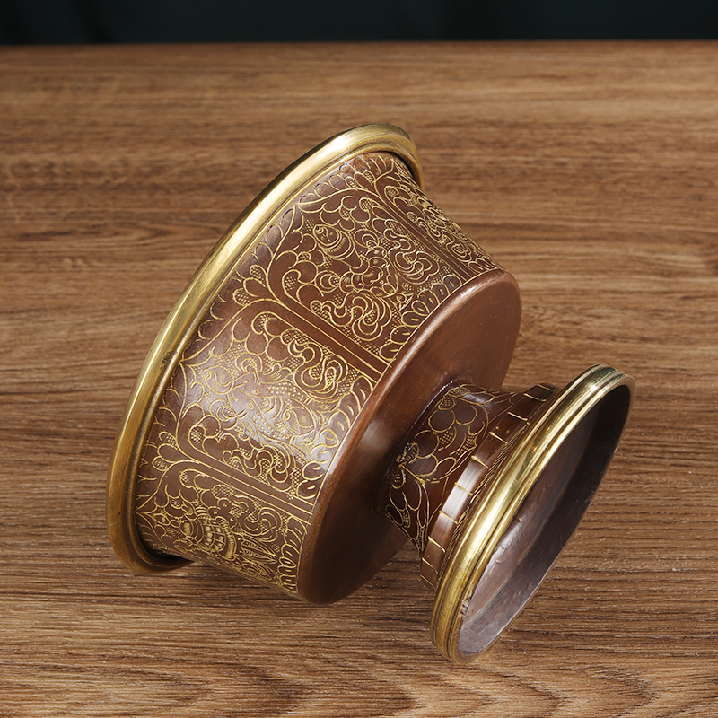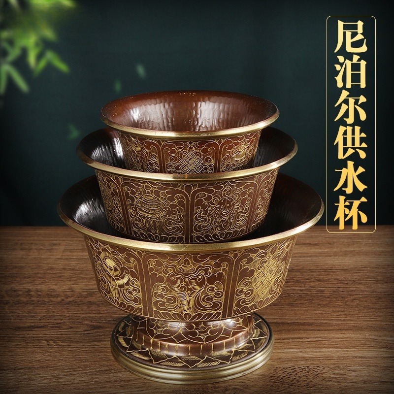 尼泊尔黄铜手工古色做旧雕花高脚供水杯供佛杯供水碗圣水杯供水碗