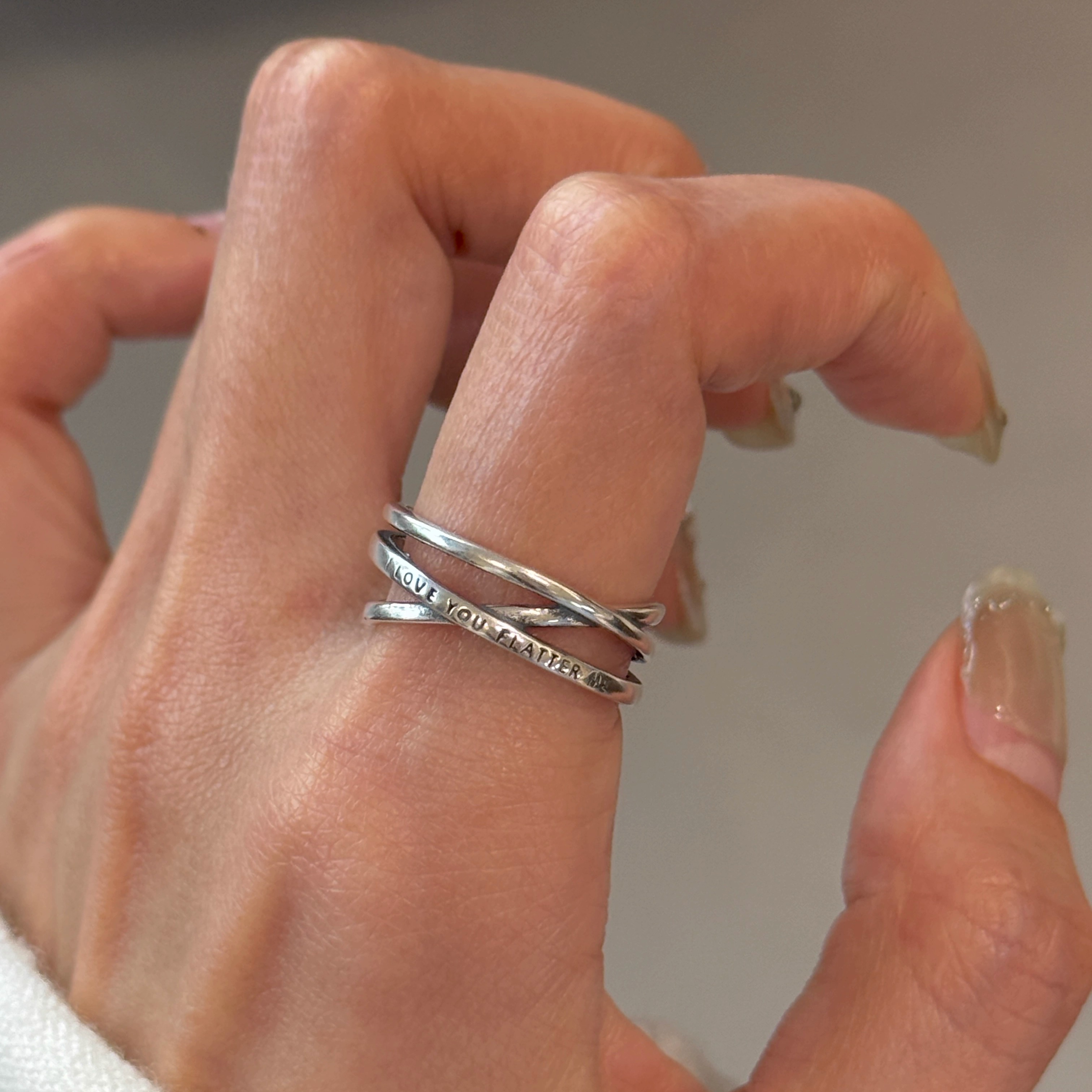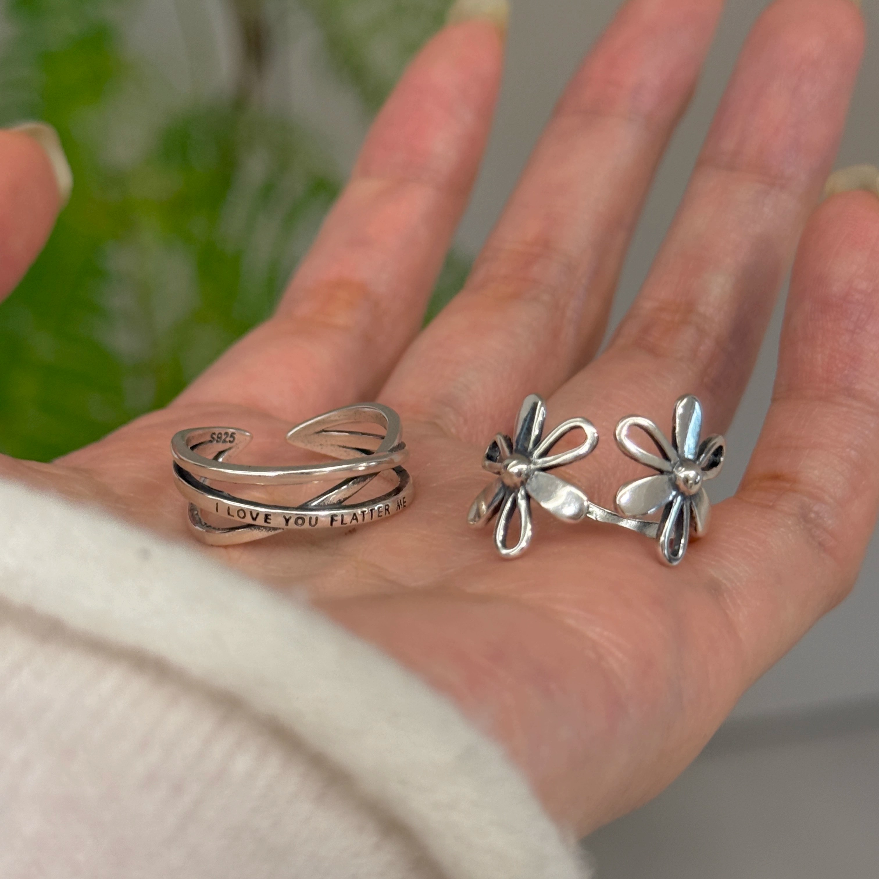s925纯银英文字母多层线条泰银戒指女做旧复古个性小花朵开口戒潮