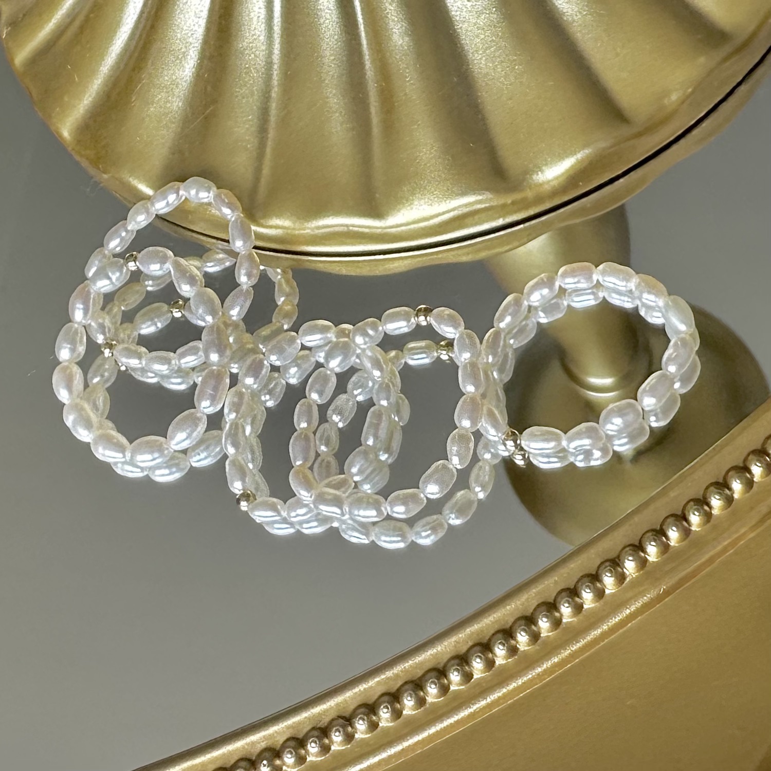 美国14K注金高级感天然淡水珍珠戒指小众百搭小米珠指环食指尾戒